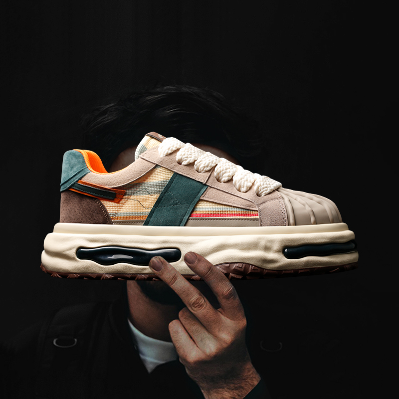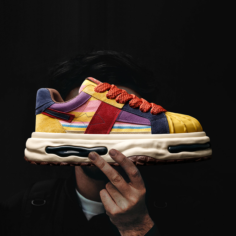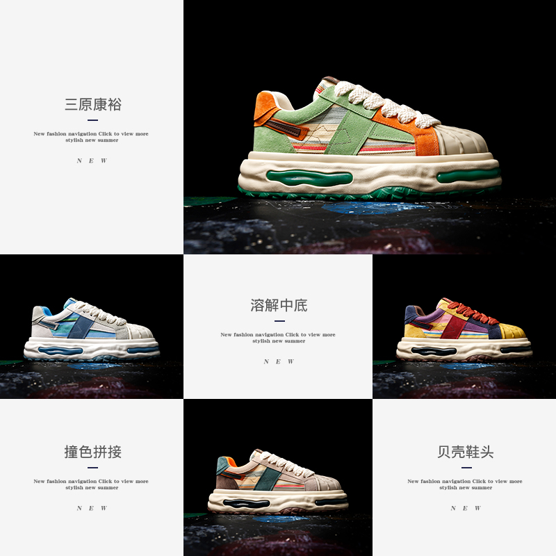 三原康裕贝壳头溶解鞋潮牌个性拼色帆布鞋夏季透气增高板鞋男小众