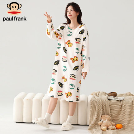 大嘴猴paul frank纯棉简约睡裙女中长款圆领长袖可爱爽肤家居服