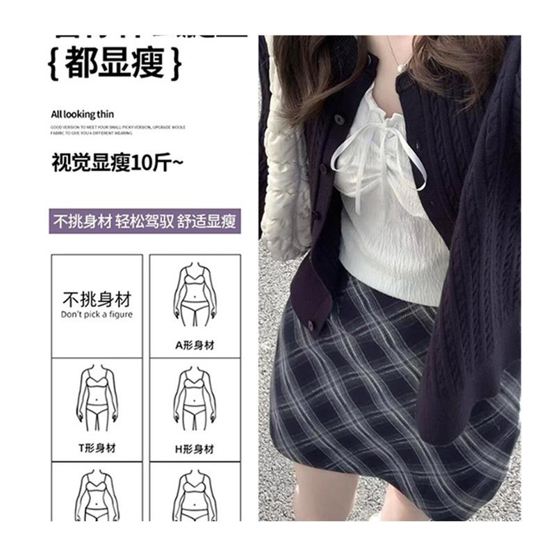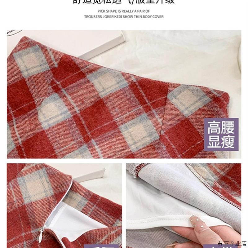 覆古格子毛呢半身裙女春秋欧货新款高腰小个子包臀灰色短裙a字裙