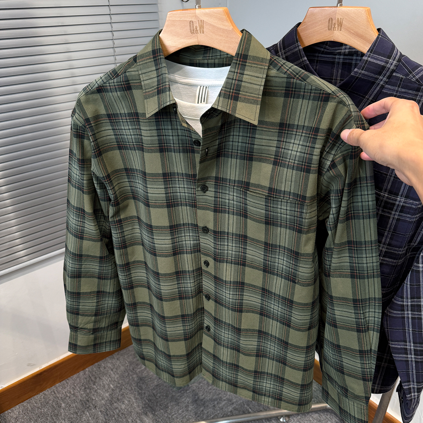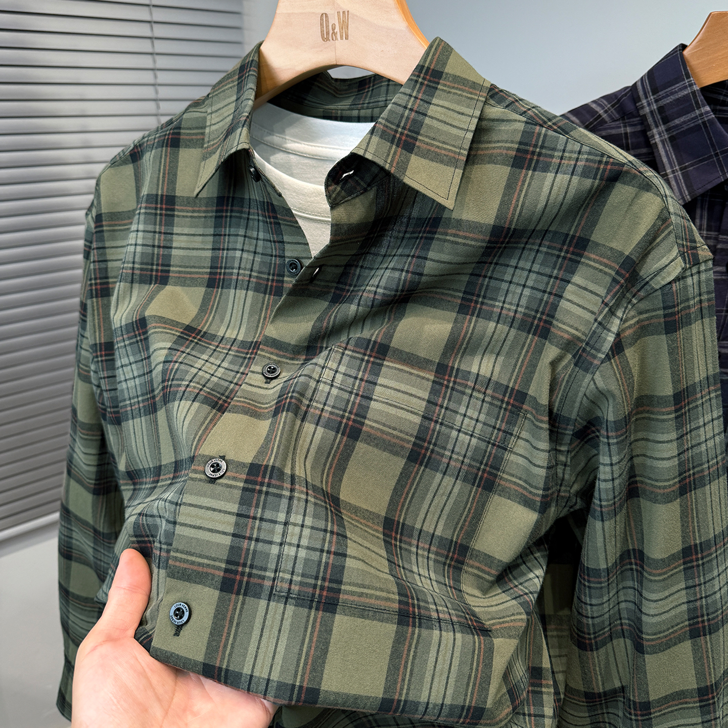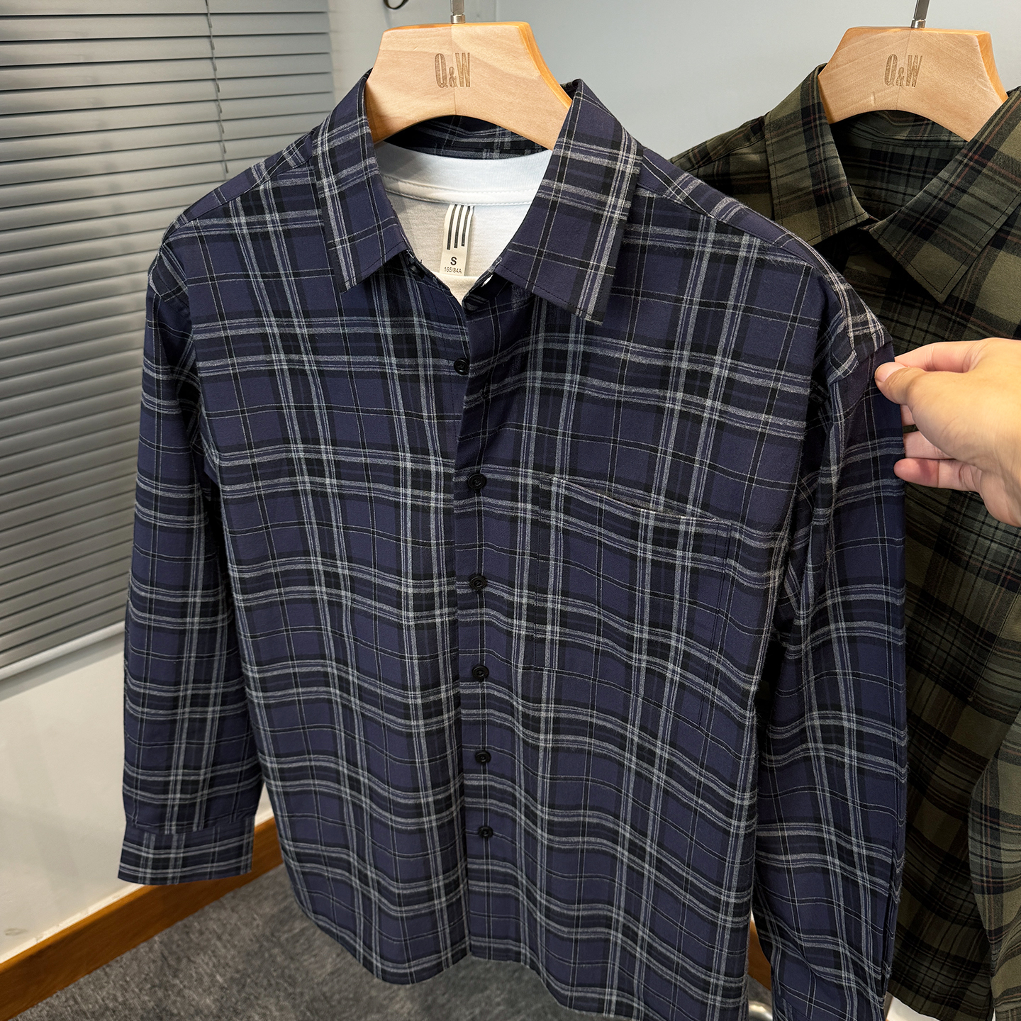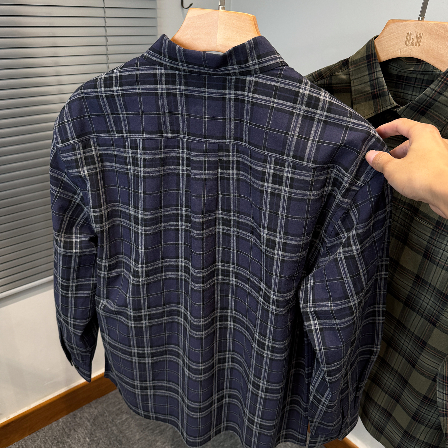 高级感格子衬衫男长袖纯棉春秋季休闲宽松衬衣外套男装开衫有口袋