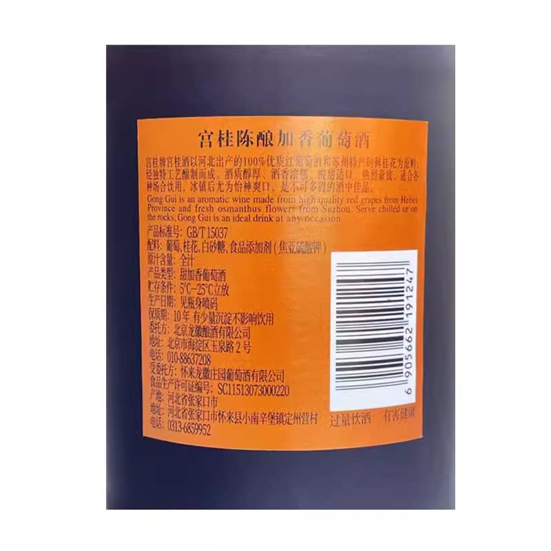 龙徽葡萄酒宫桂陈酿加香桂花酒女士甜酒红酒13.5度600x2瓶装