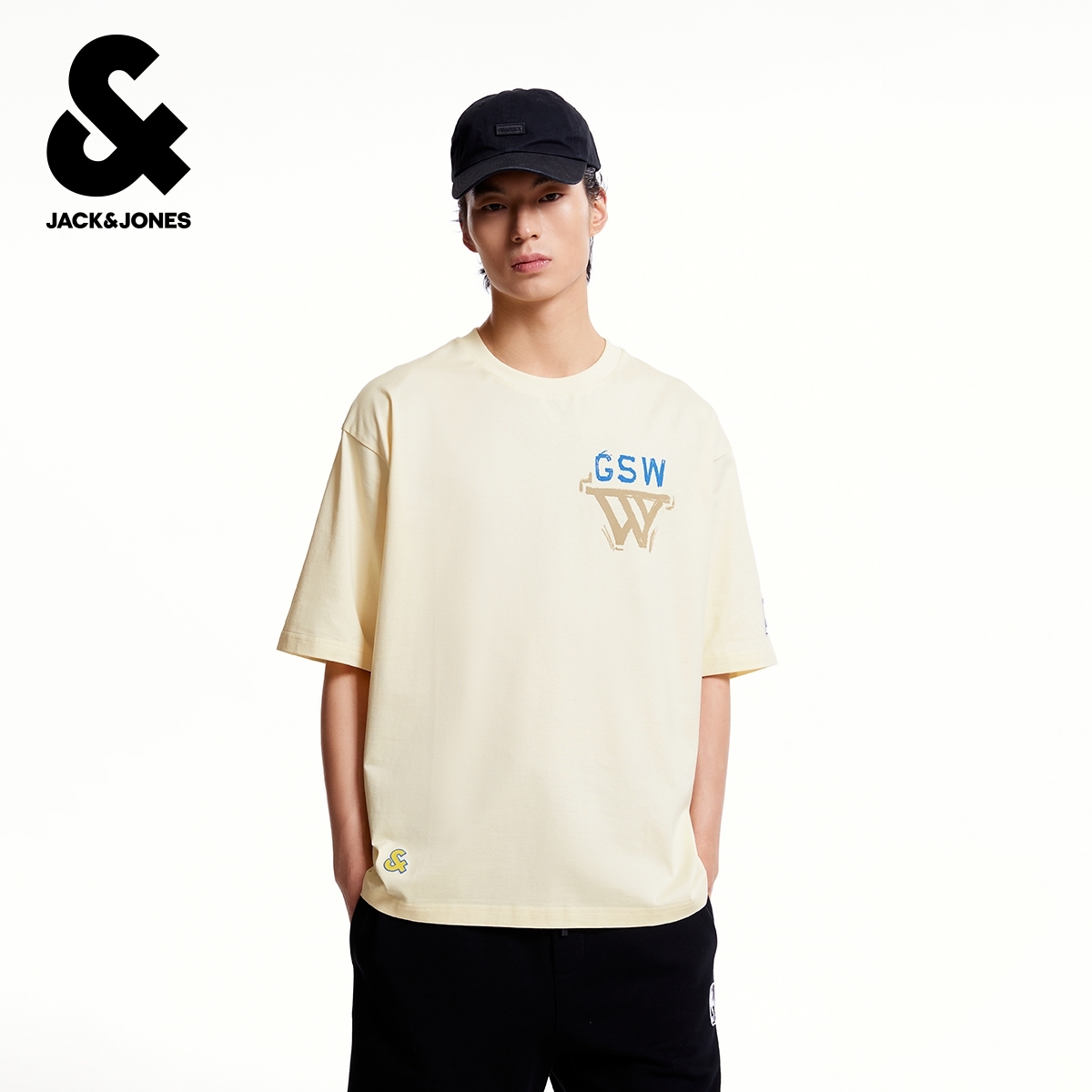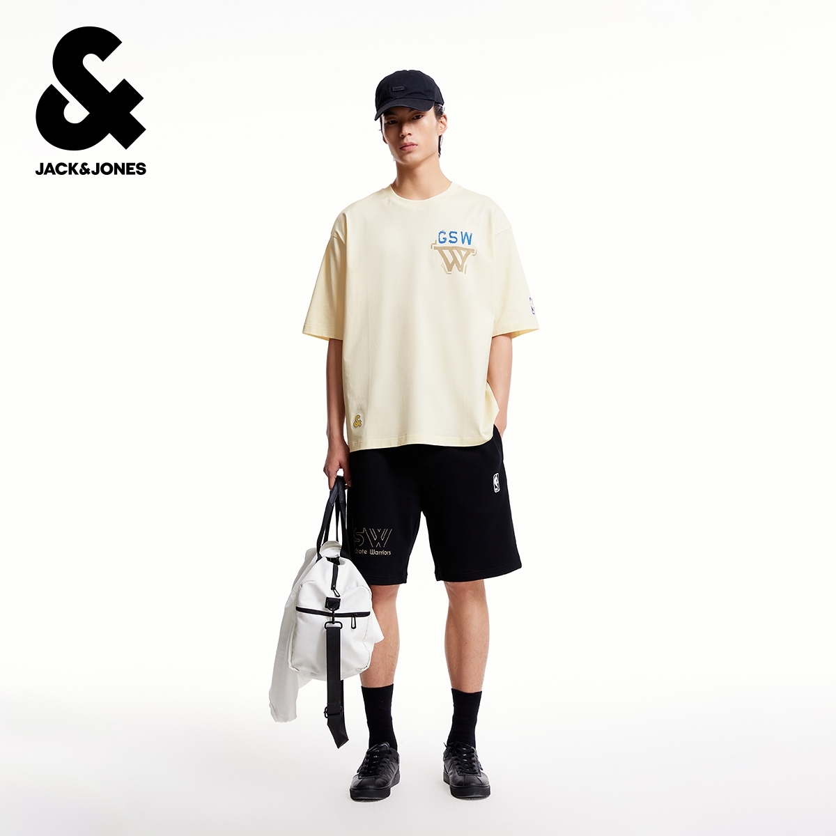 t区绫致杰克琼斯NBA联名夏男T恤背部勇士队图案潮流时尚运动短袖