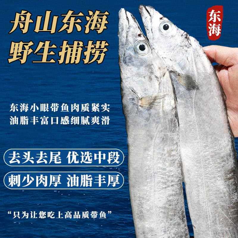 舟山小眼带鱼新鲜冷冻特大号带鱼段中段鲜活海鲜水产8-10cm宽大级