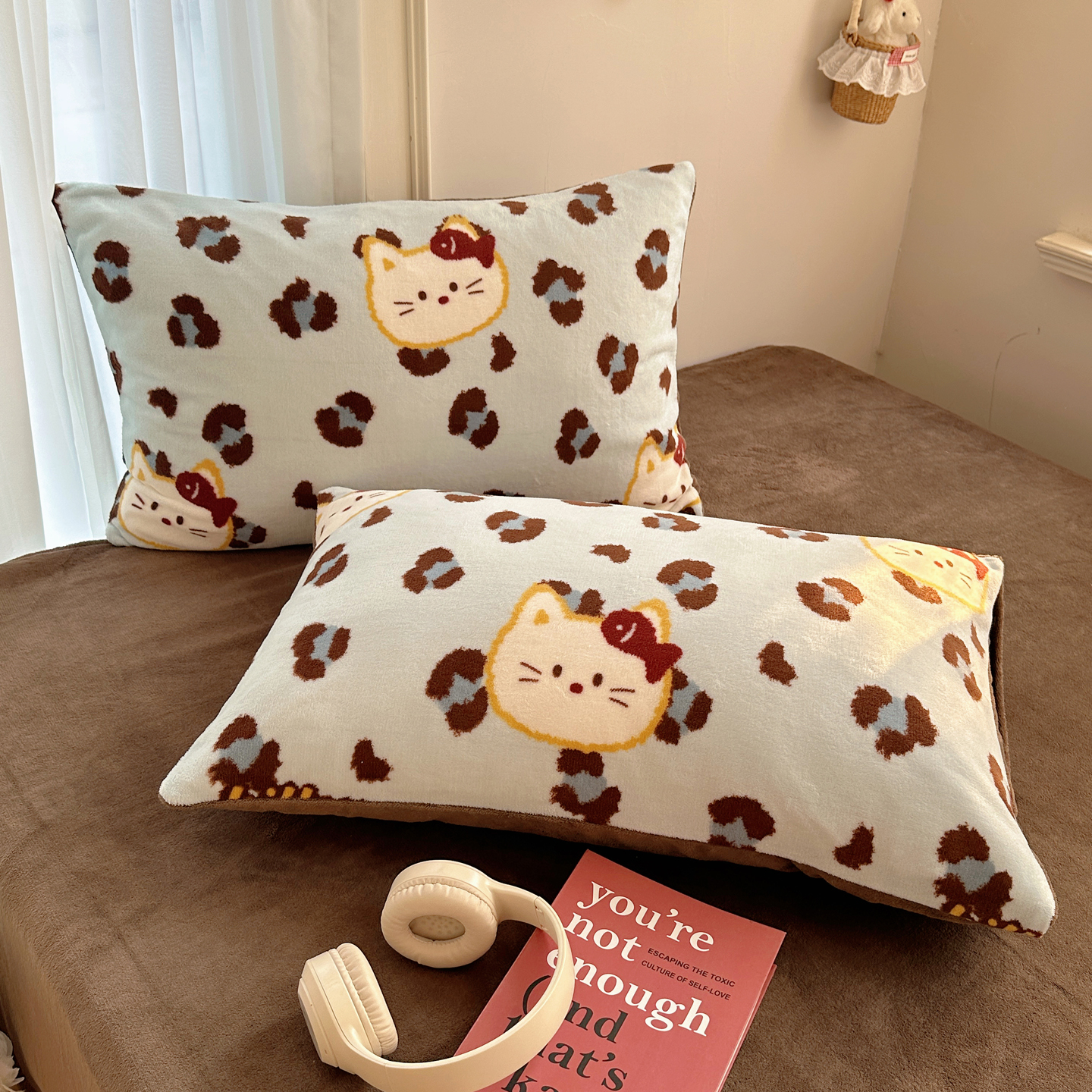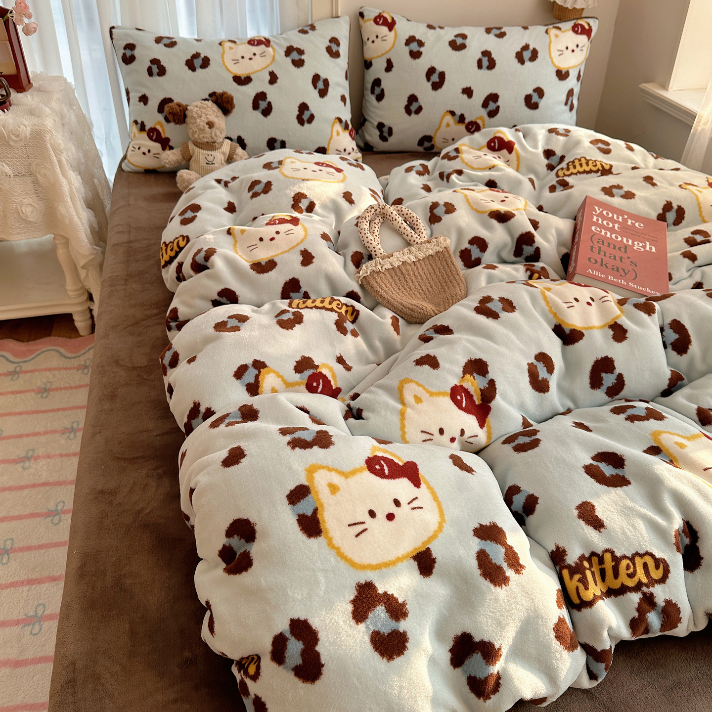 卡通可爱牛奶绒床上四件套ins小清新少女奶油被套单人三件套毛绒