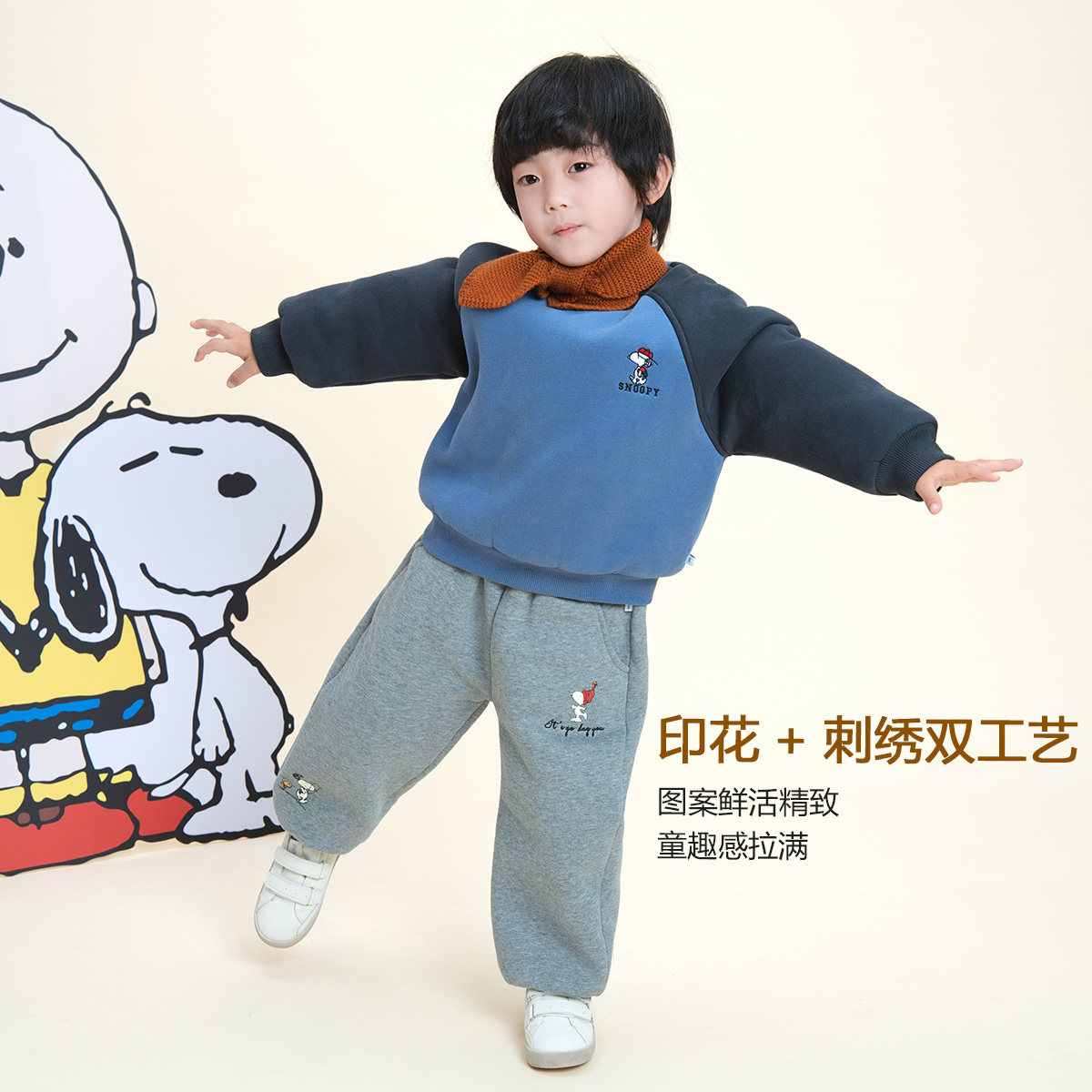 现货【史努比联名】儿童冬季加绒厚款史努比联名束脚裤保暖CZ5S39