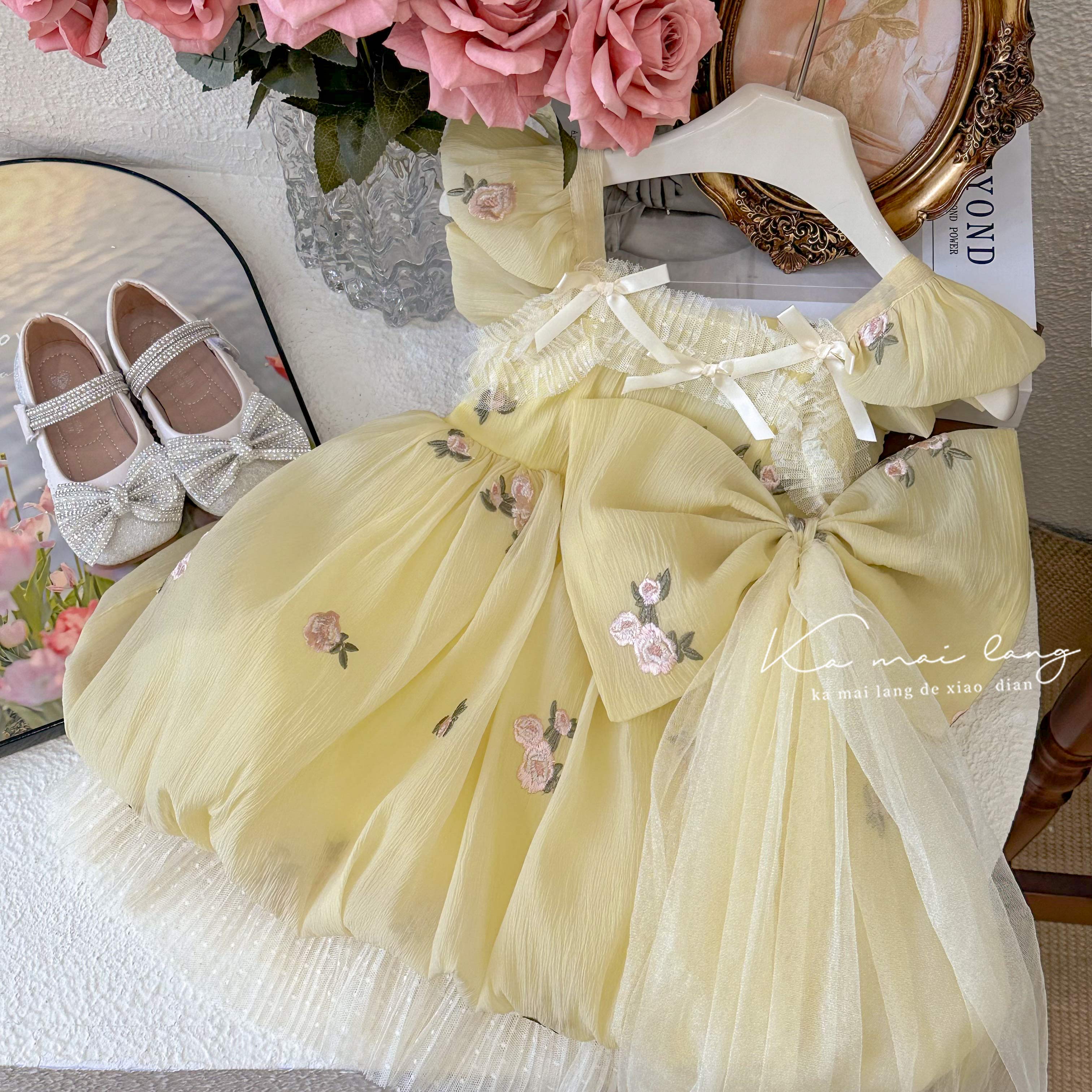 女童夏款连衣裙2025新款儿童夏装女宝小女孩2蝴蝶结3公主裙子4岁5