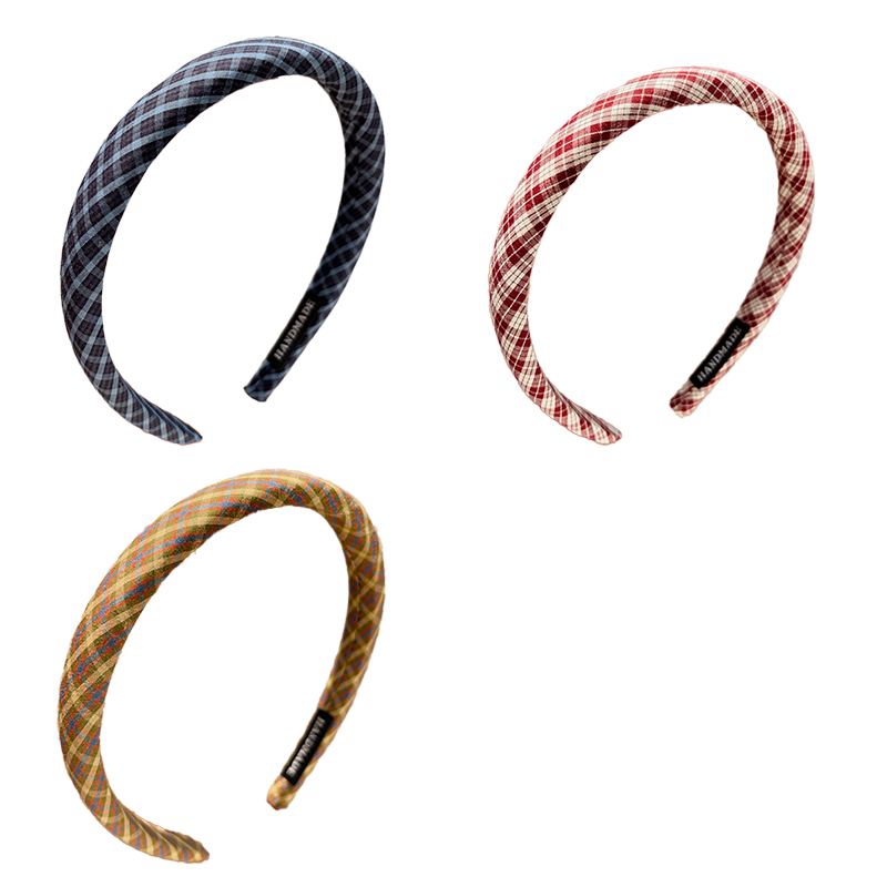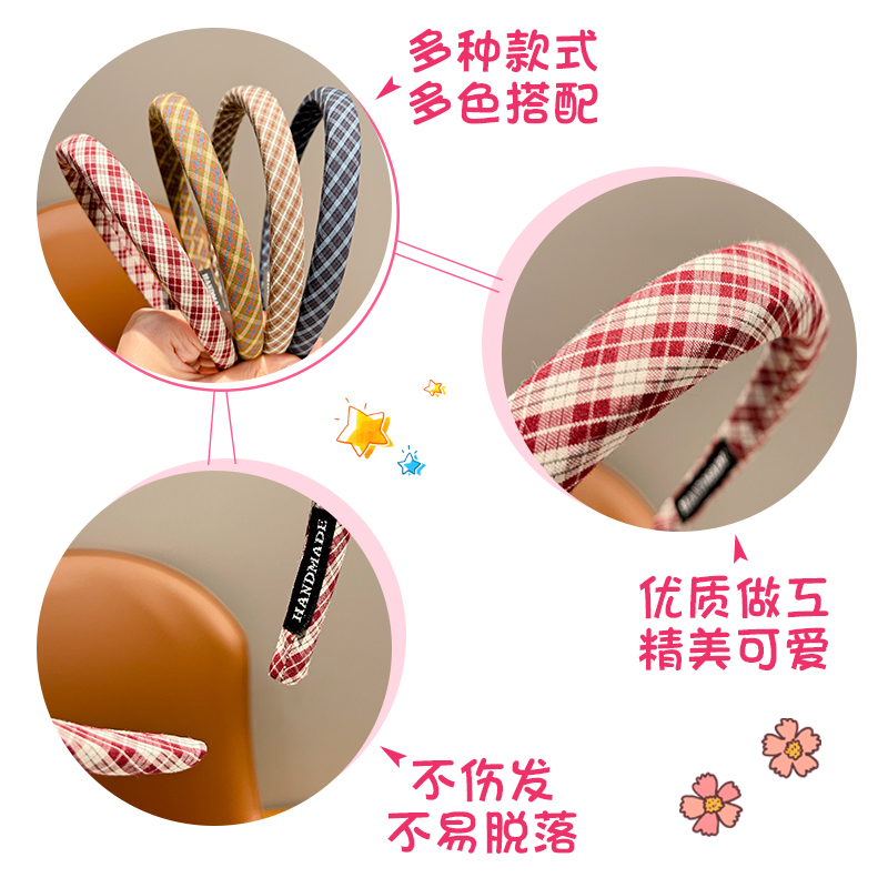 复古儿童发箍格纹全布包2025新款韩版棕色女孩头箍不勒头女童头饰
