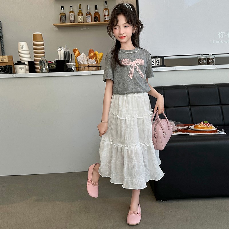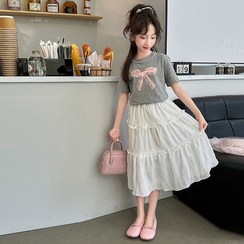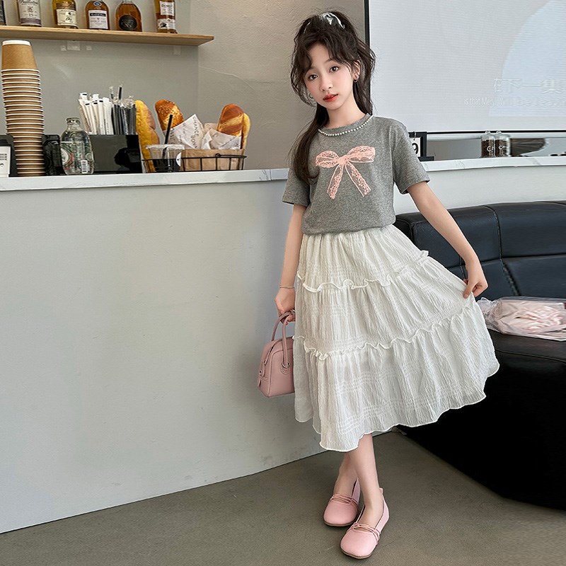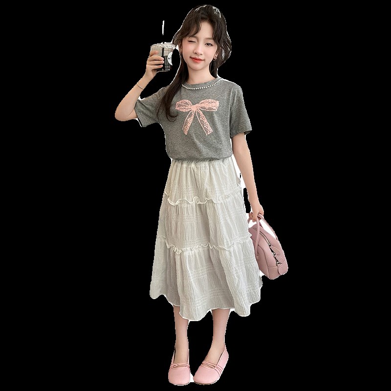 女童连衣裙夏季套装裙2024新款女孩洋气时髦蛋糕裙儿童裙子两件套