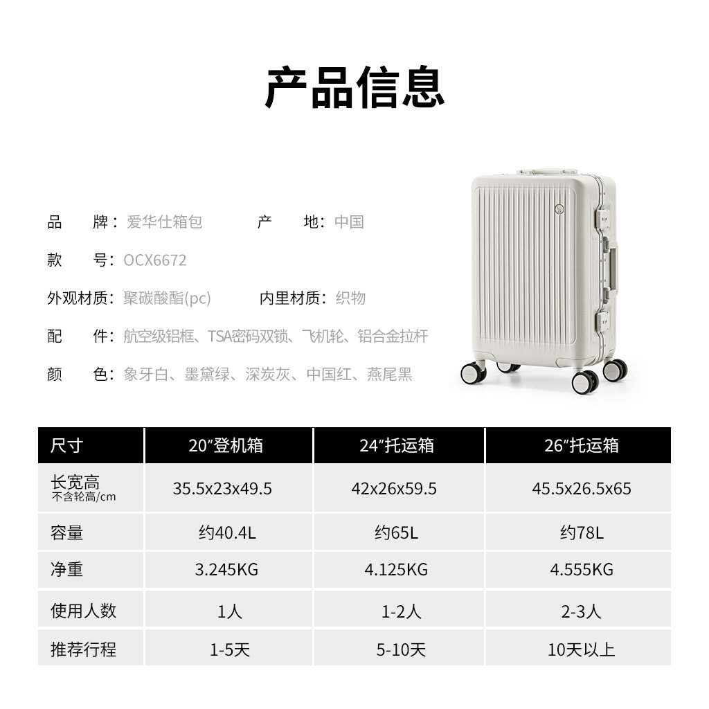 【超市臻选】爱华仕行者行李箱20寸铝框登机箱24寸密码拉杆旅行箱