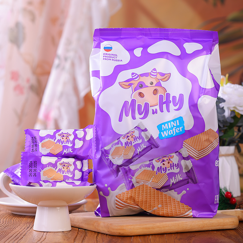 俄罗斯原装进口大奶牛威化饼干牛奶味休闲零食网红食品独立包装