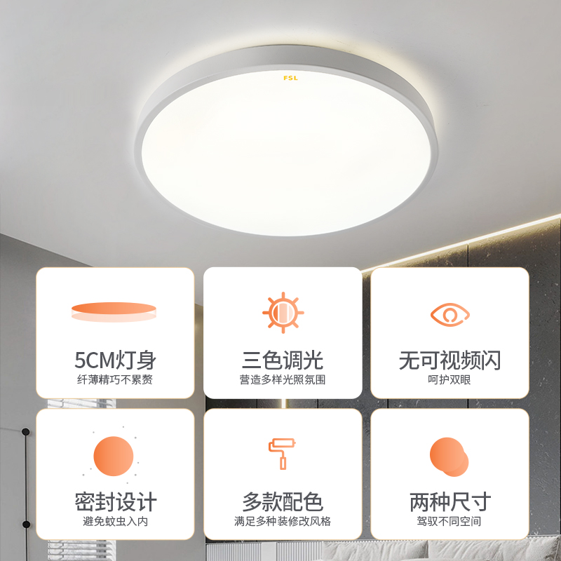 FSL佛山照明LED吸顶灯现代简约圆形卧室灯儿童房餐厅房间客厅灯具