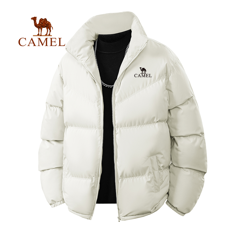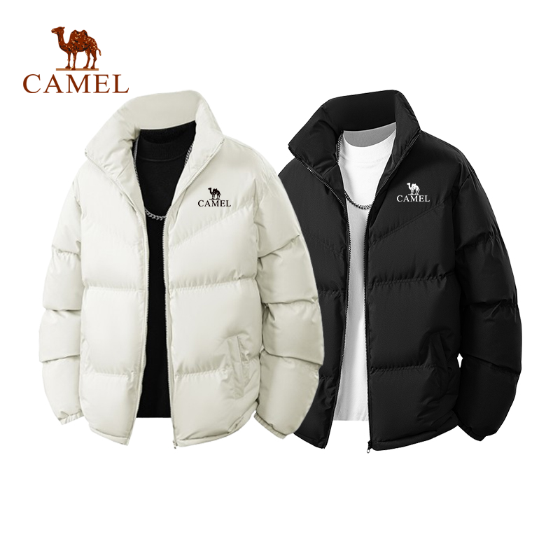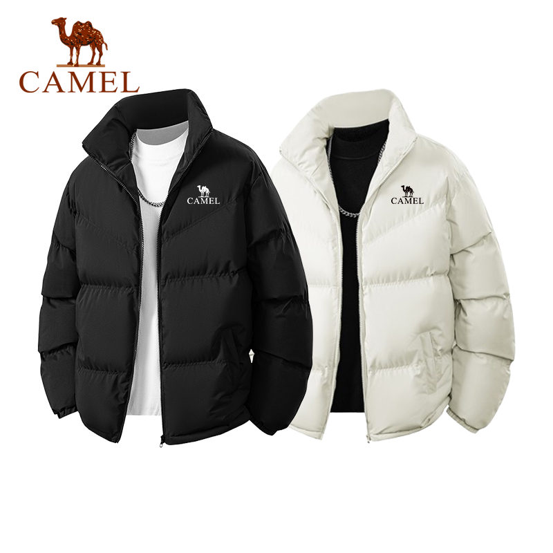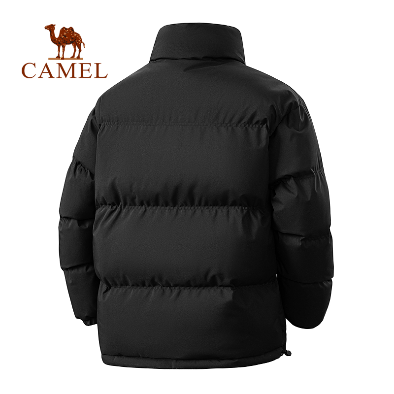 骆驼羽绒丝绵男士短款棉衣冬季加厚保暖外套黑色保暖立领面包服