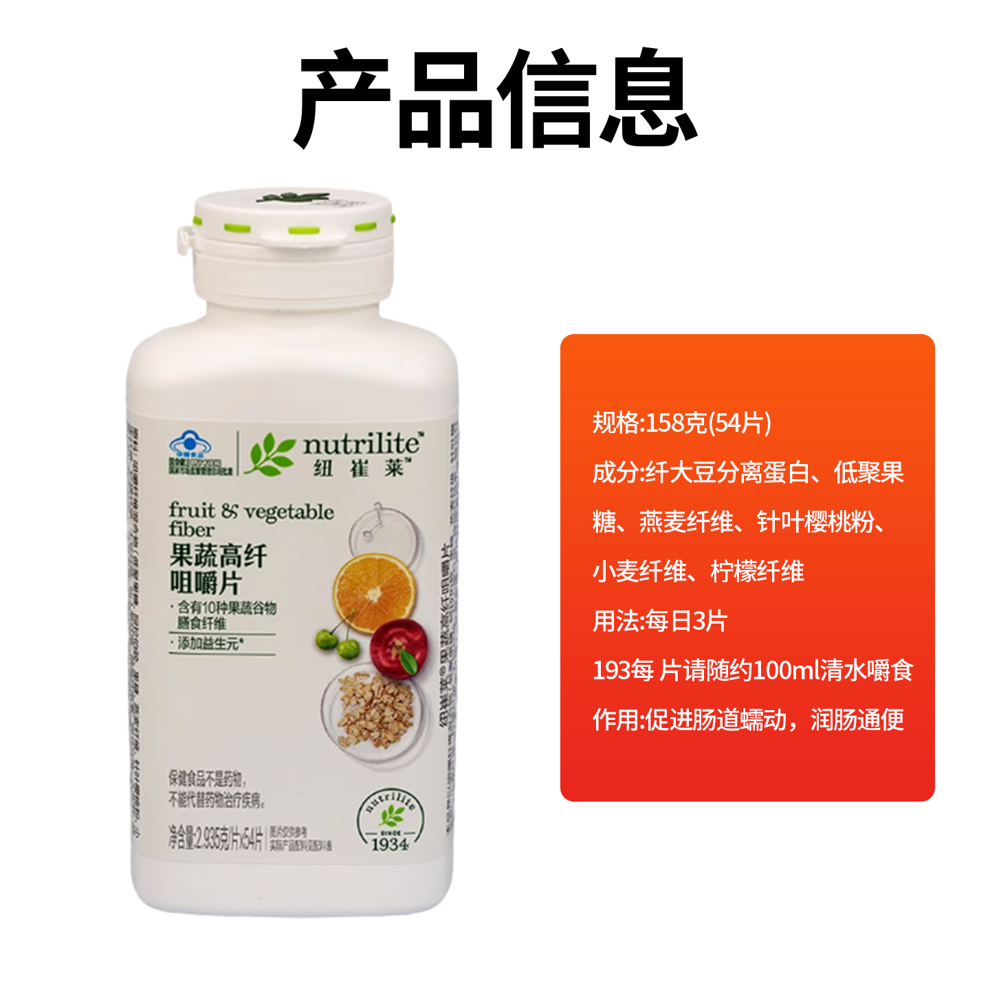 安利纽崔莱果蔬高纤咀嚼54片膳食青年成人益生元营养纤维片素排便