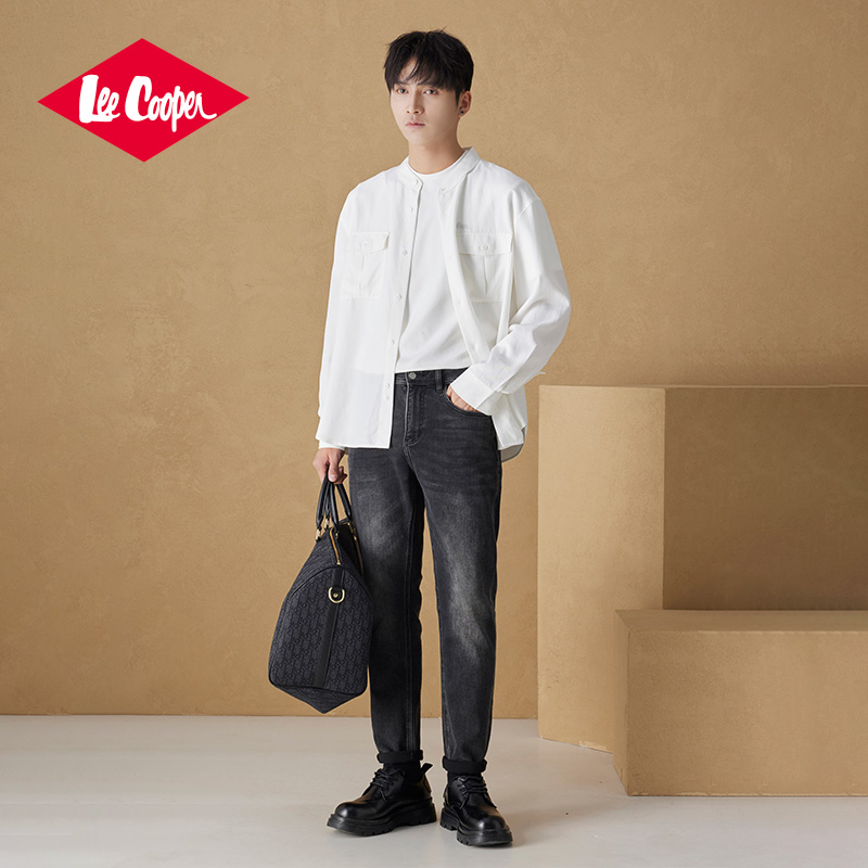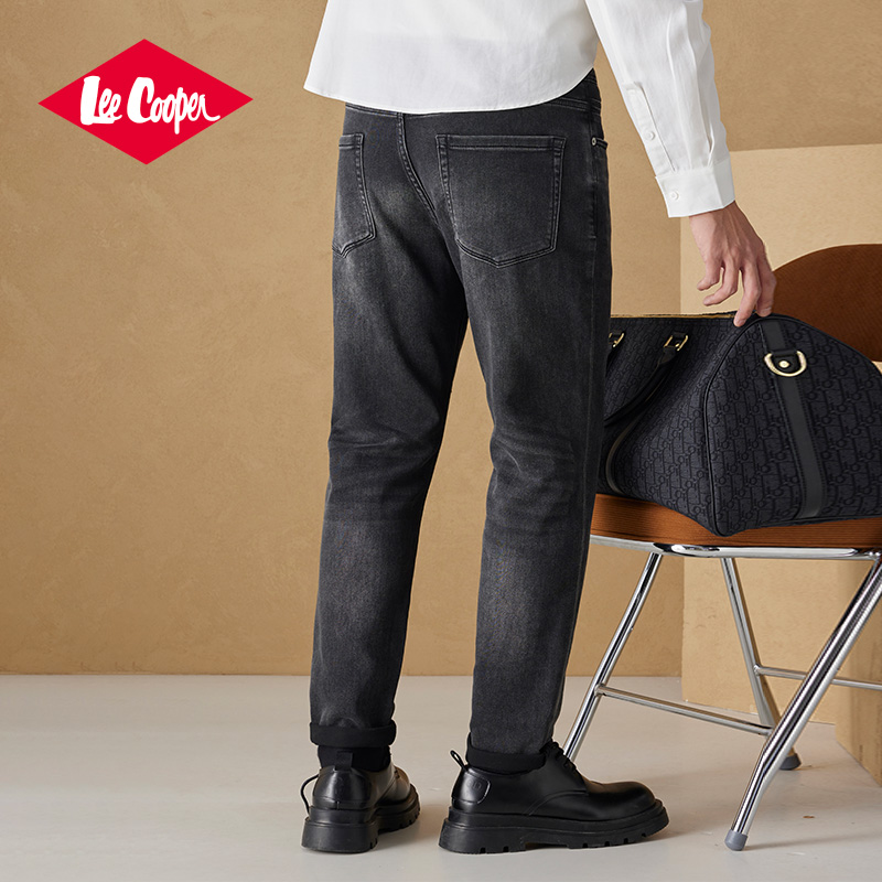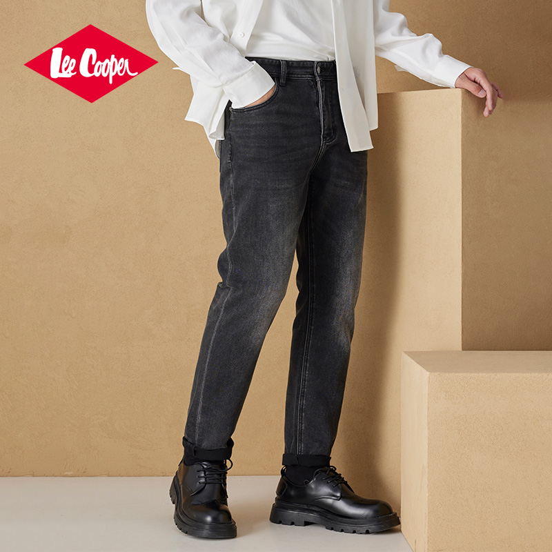 孟子义代言Lee Cooper黑色小直筒牛仔裤男款秋季新款修身锥形长裤