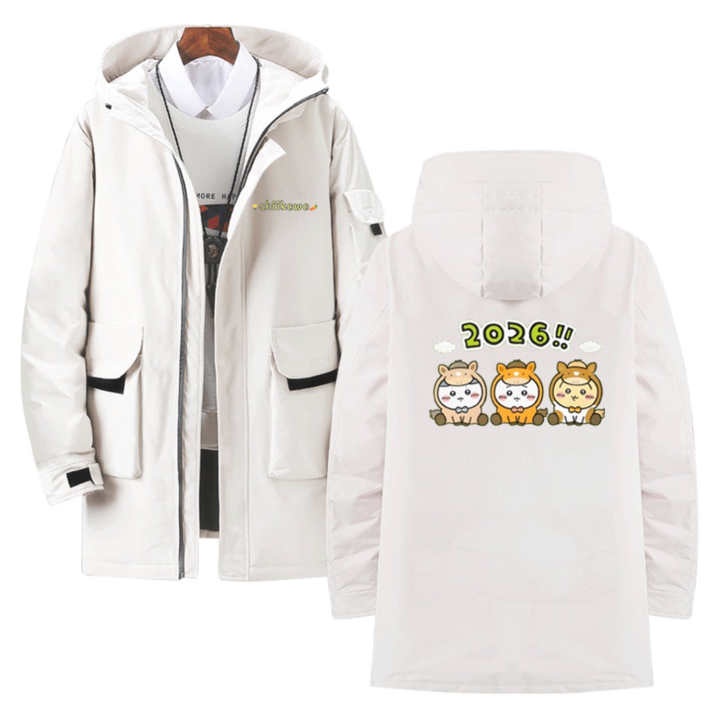 男女情侣可定制中长羽绒服外套马年chiikawa吉伊卡哇联名cos卡通