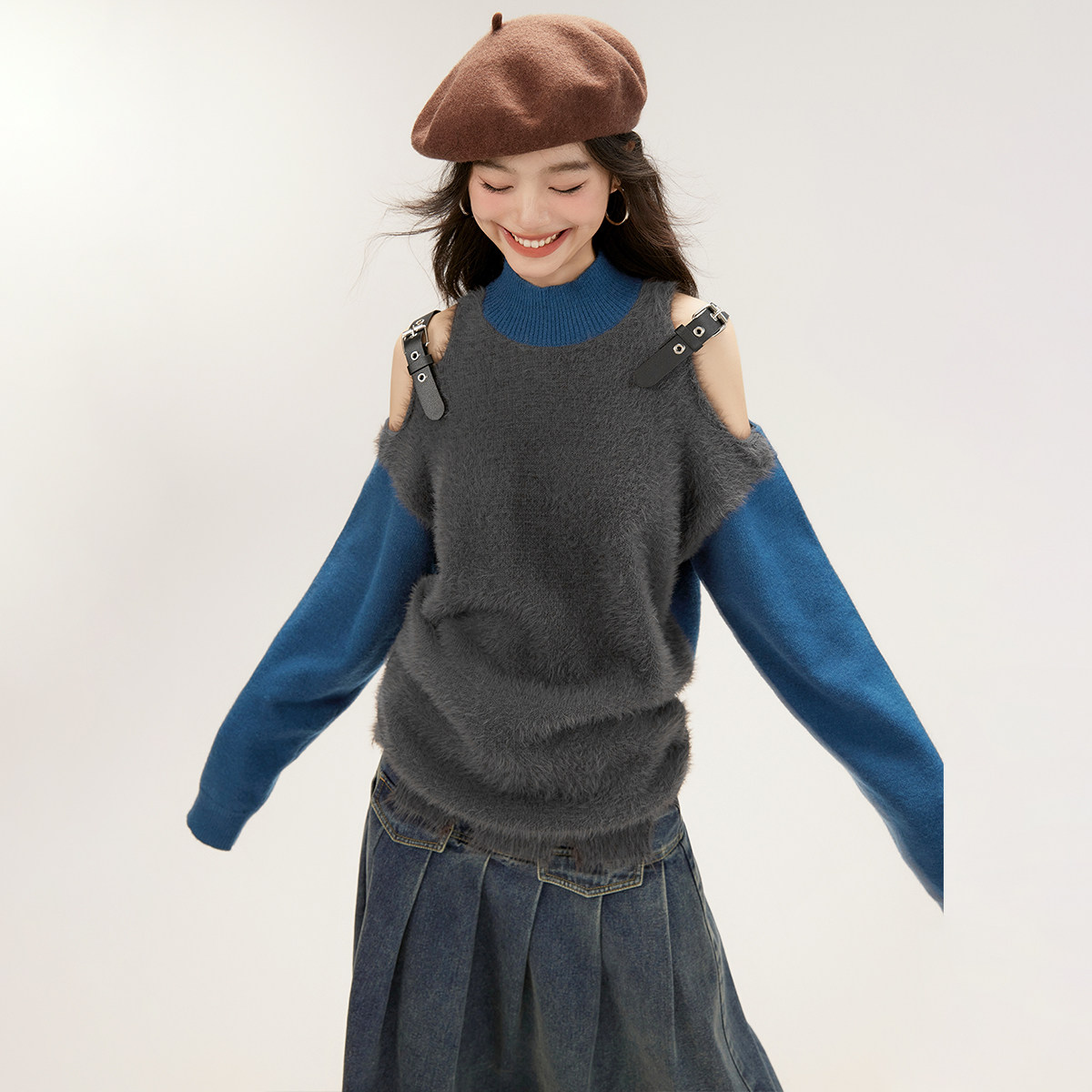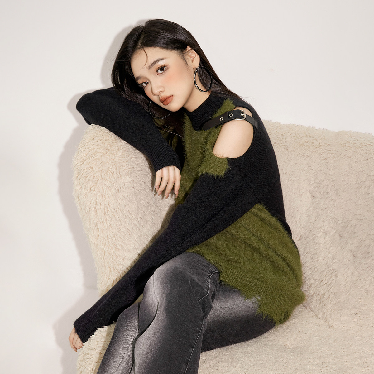 【69/件】EPTISON毛衣女2025冬季新款软糯复古半高领宽松气质上衣