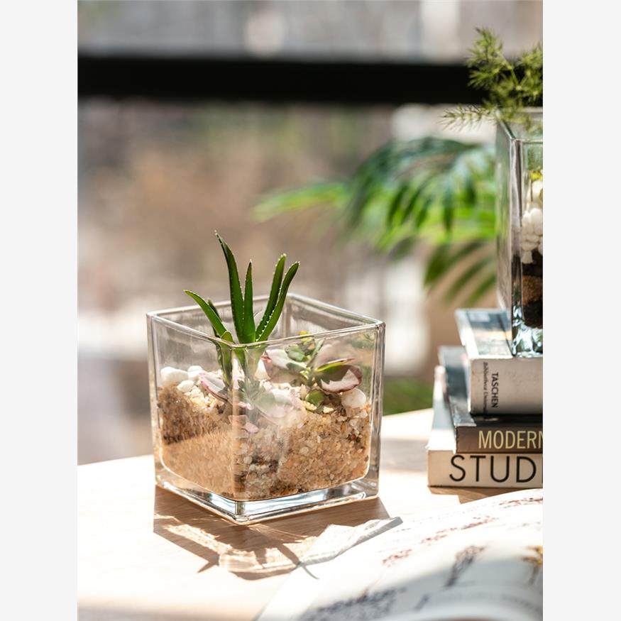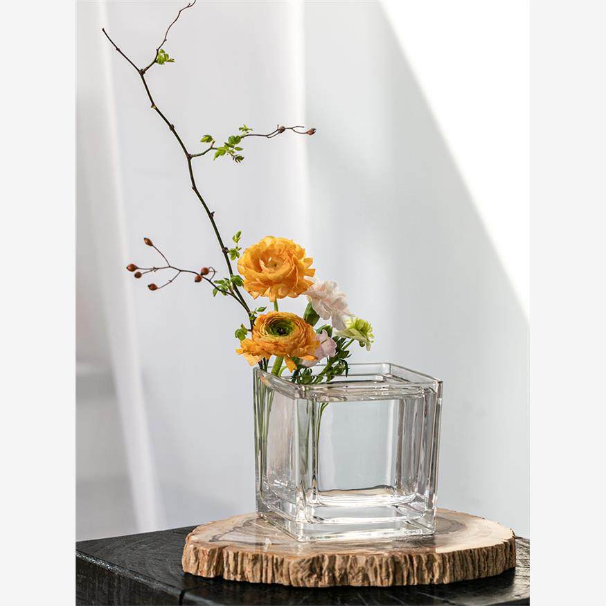 创意水培器皿花瓶摆件透明玻璃缸花盆插花水养鲜花绿萝正方形花器