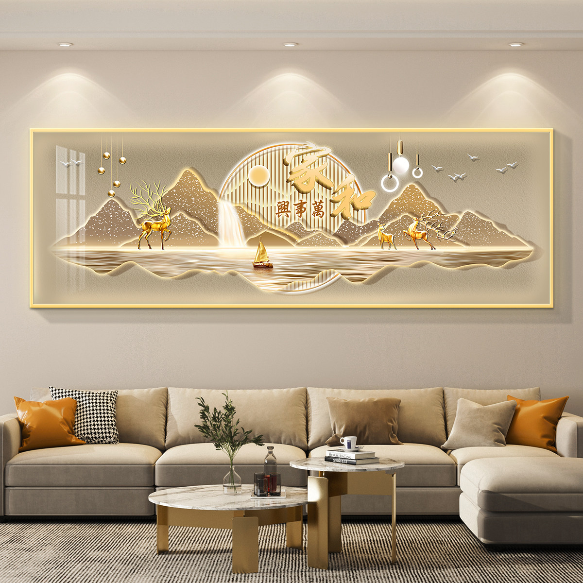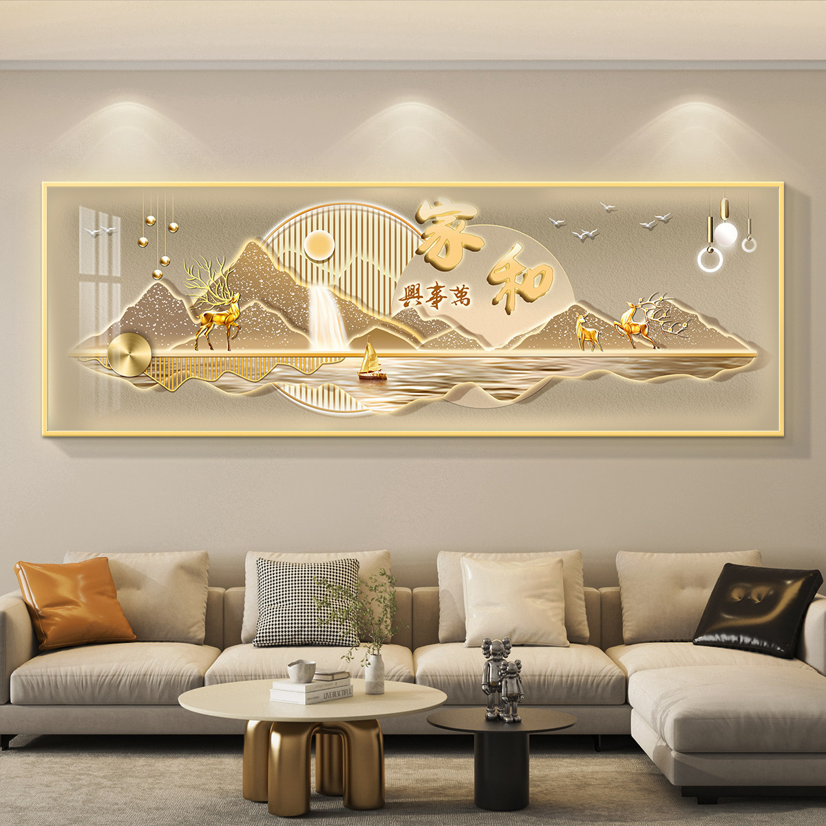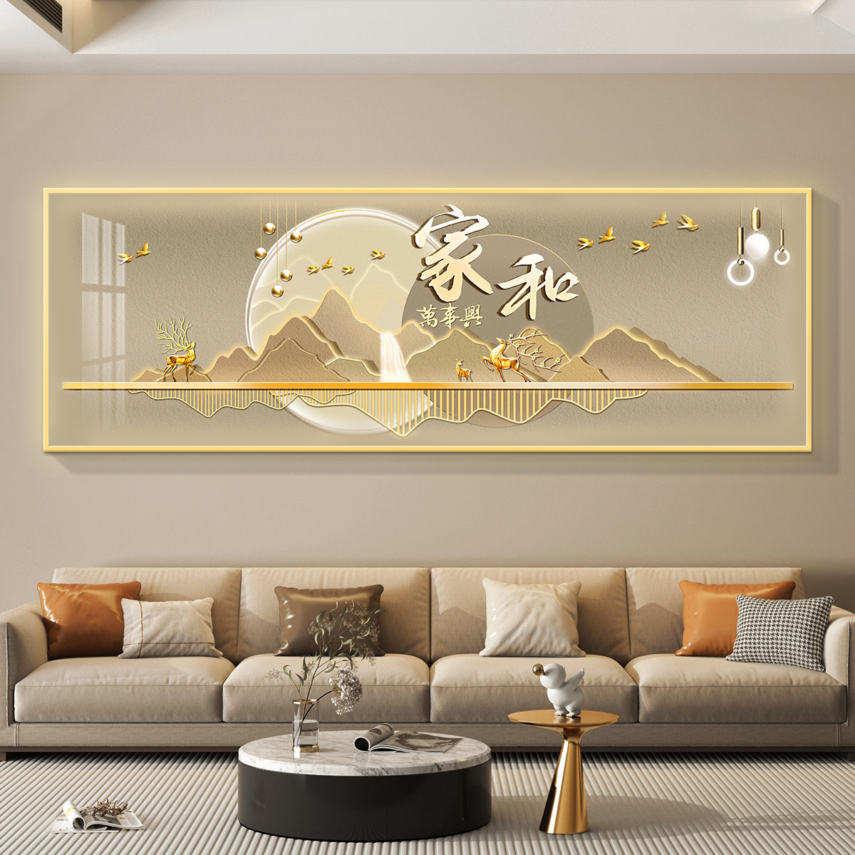 家和万事兴客厅装饰画轻奢沙发背景墙挂画简约现代高级感横幅壁画