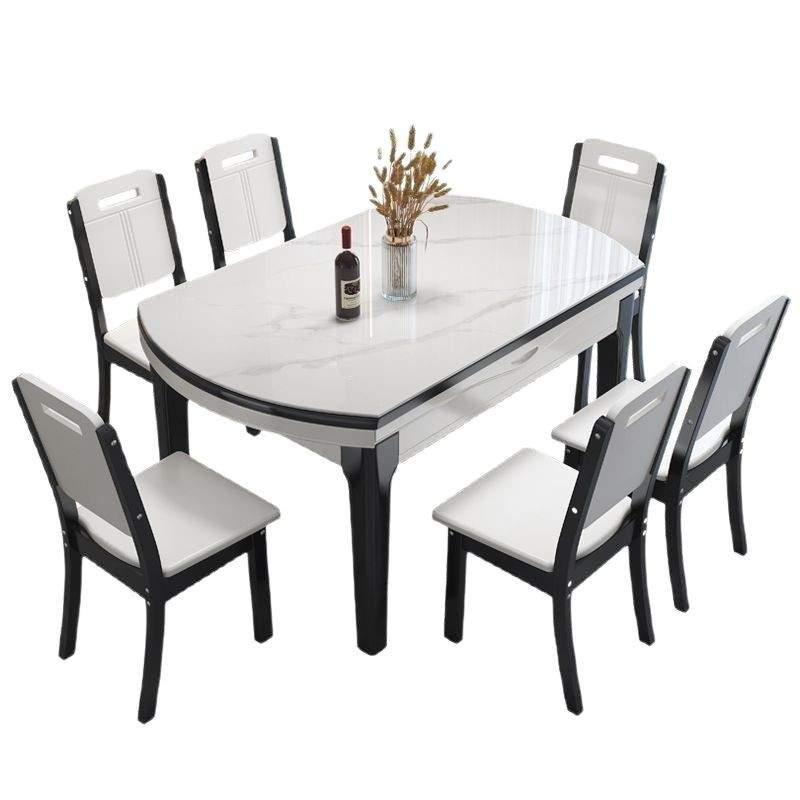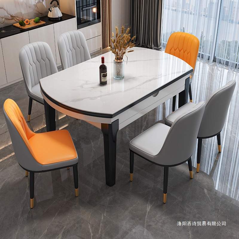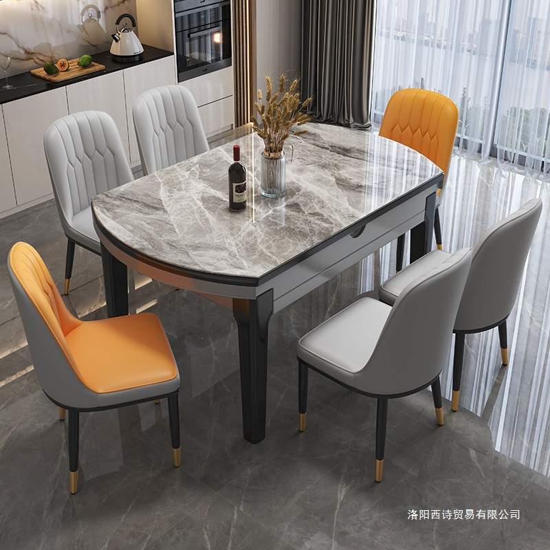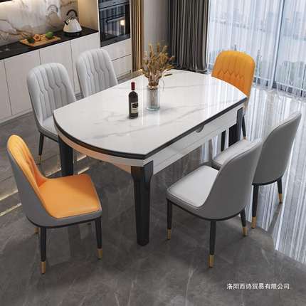 实木岩板餐桌现代简约小户型家用伸缩餐桌椅组合轻奢饭桌可变圆桌