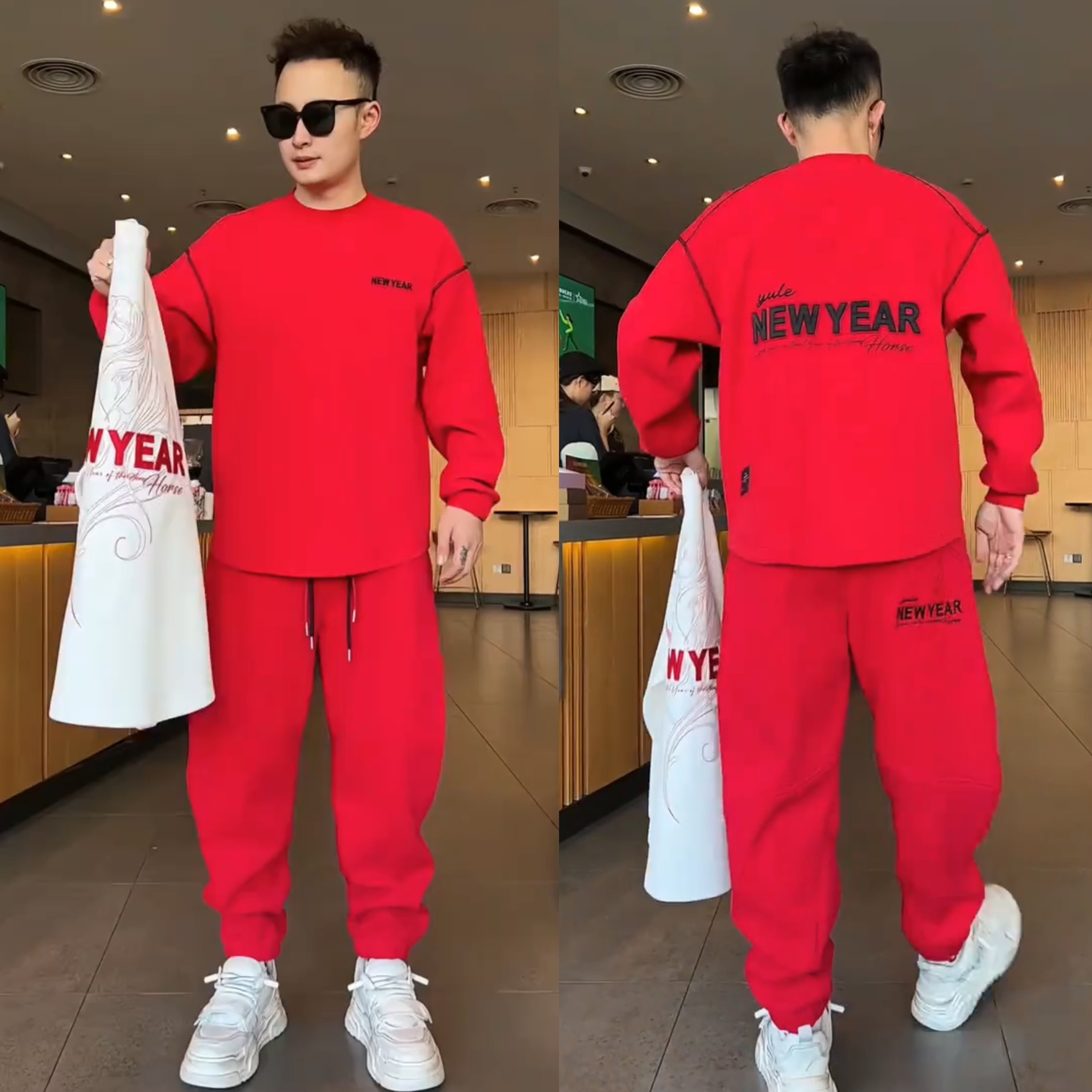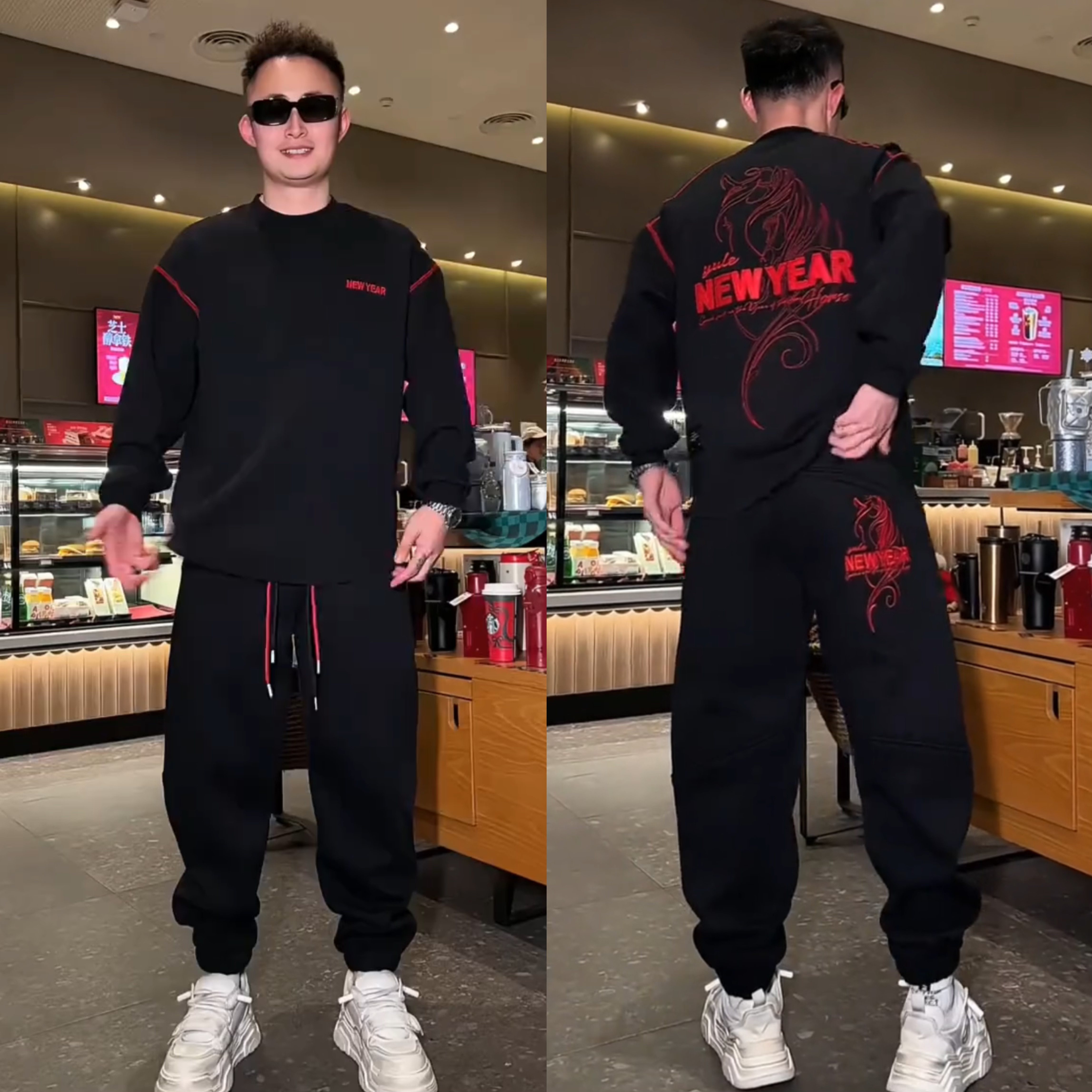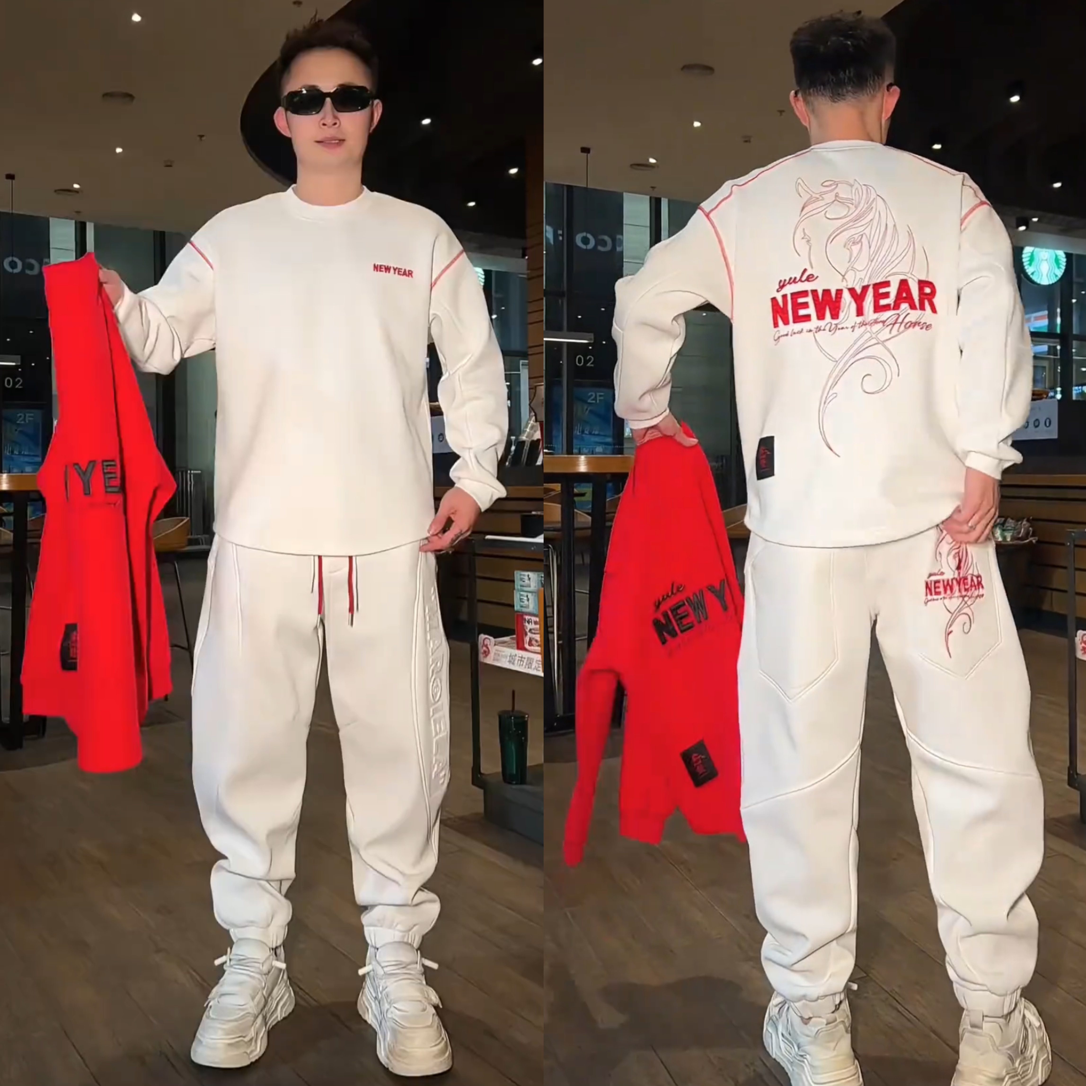 冬季加绒加厚刺绣男卫衣卫裤套装