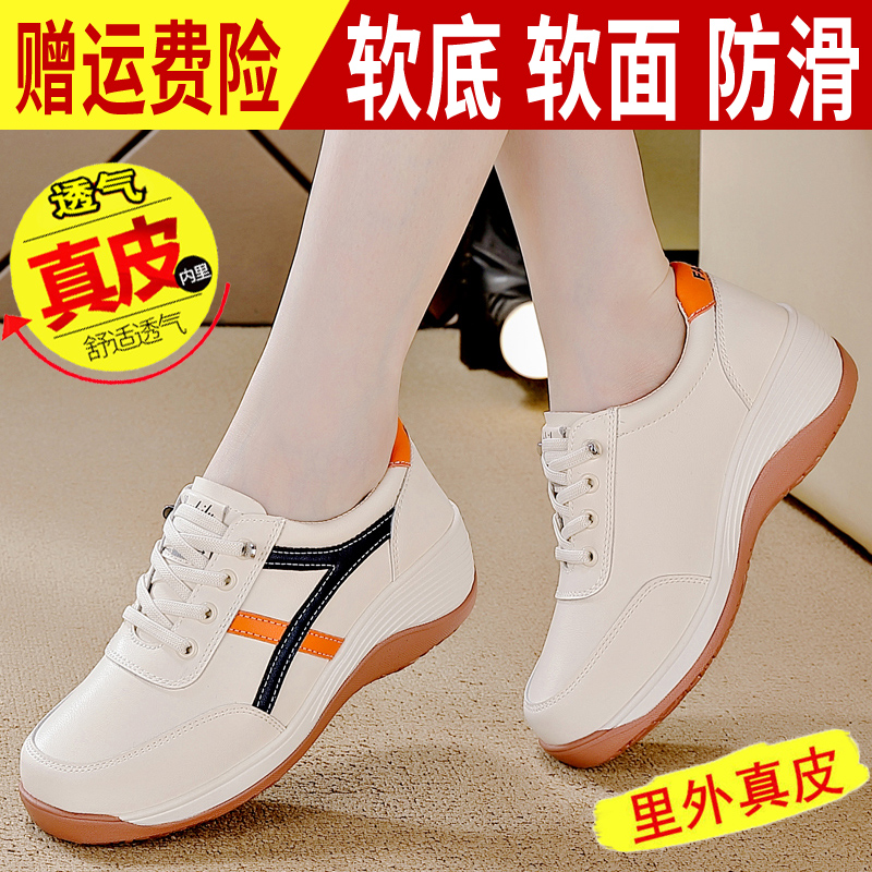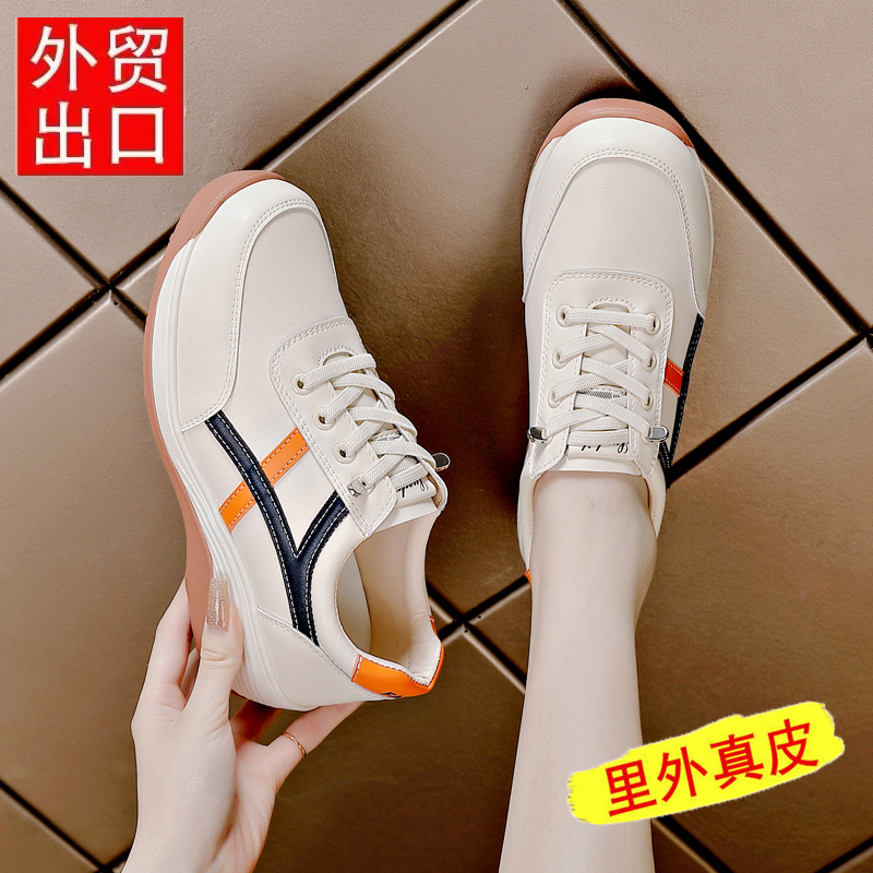 小白鞋女2025年秋季新款百搭真皮厚底轻便软底防滑旅游阿甘休闲鞋