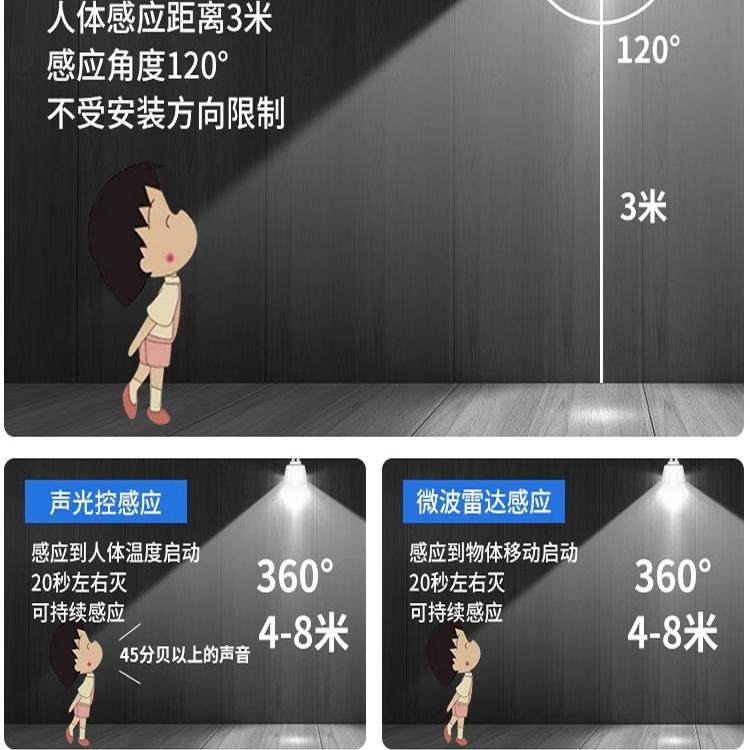 led人体感应灯泡过道楼道走廊雷达感应智能红外线声光控灯声控e27