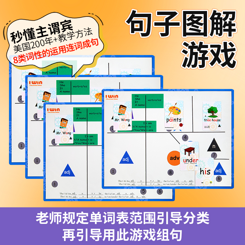 IWin英语词性组句子少儿桌游课间小学语法游戏图解主谓宾KET词汇