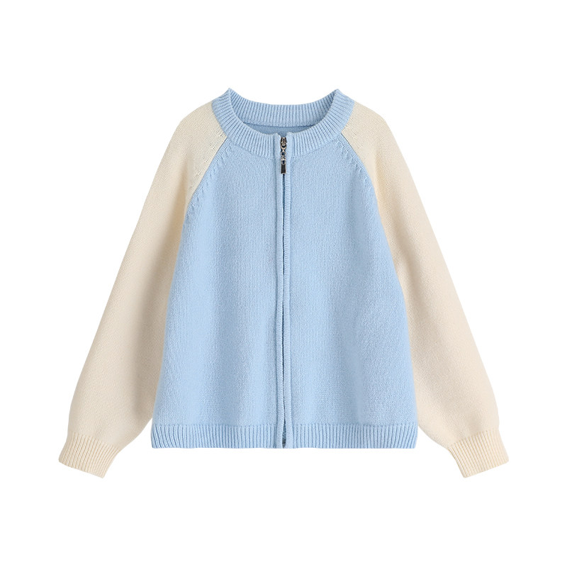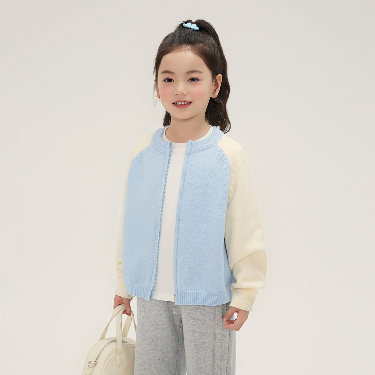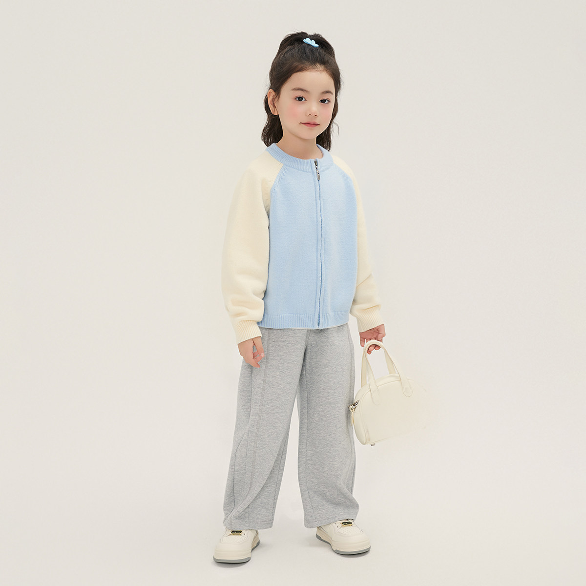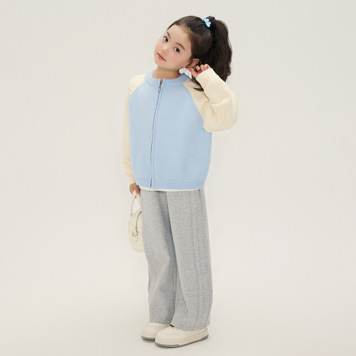 布丁哈鲁春装女童大童针织开衫2025春秋新款儿童撞色洋气打底毛衣