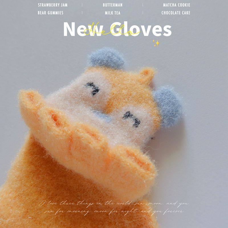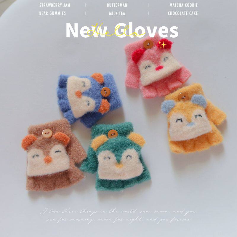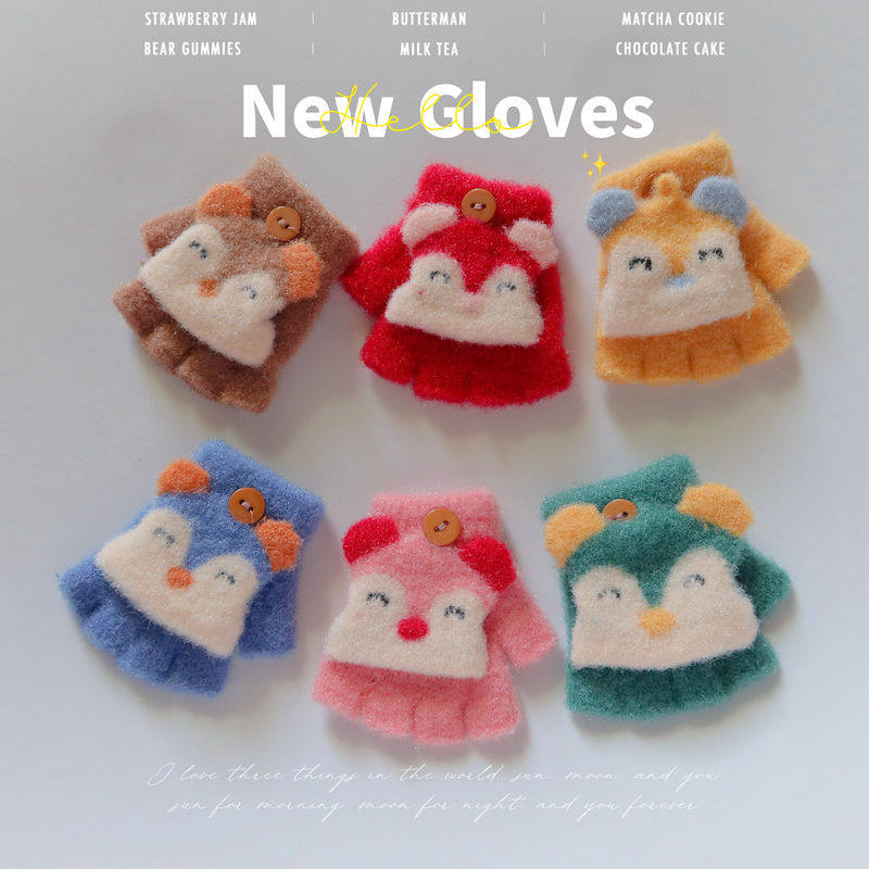 婴儿手套0-2岁加绒加厚保暖冬季半指翻盖幼儿童男女宝宝卡通可爱1