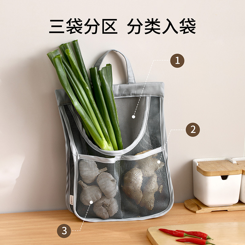 厨房葱姜蒜收纳袋子挂墙果蔬大蒜网兜壁挂储物网袋放蒜头生姜挂袋