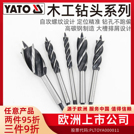 YATO木工钻头10-32mm六角柄四槽四刃支罗钻开孔器塑料木板打扩孔
