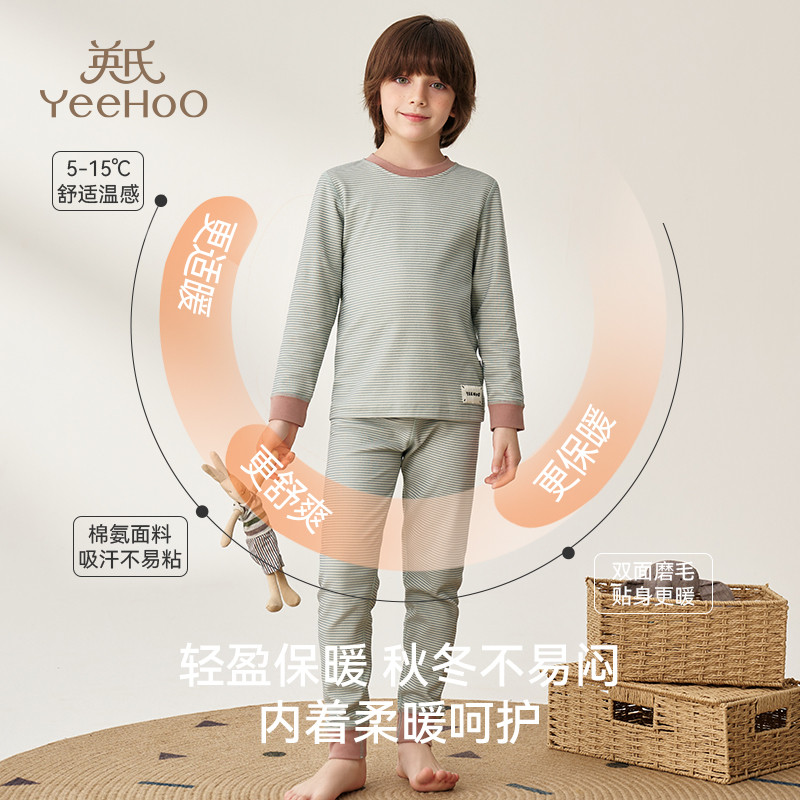 英氏儿童保暖内衣小男孩秋裤秋衣套装a类分体睡衣男童长袖家居服