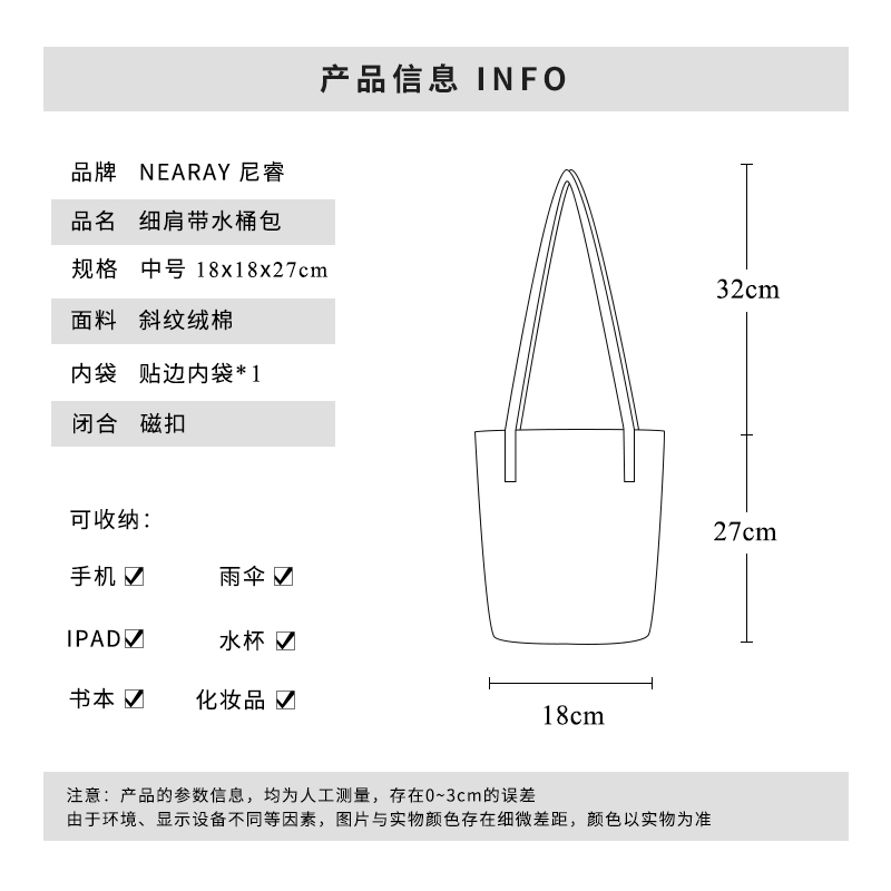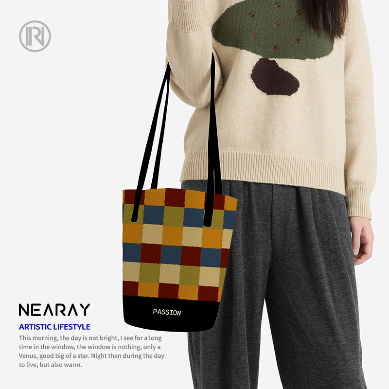 尼睿文艺休闲新款复古格纹单肩包大容量百搭通勤水桶包女帆布包AI