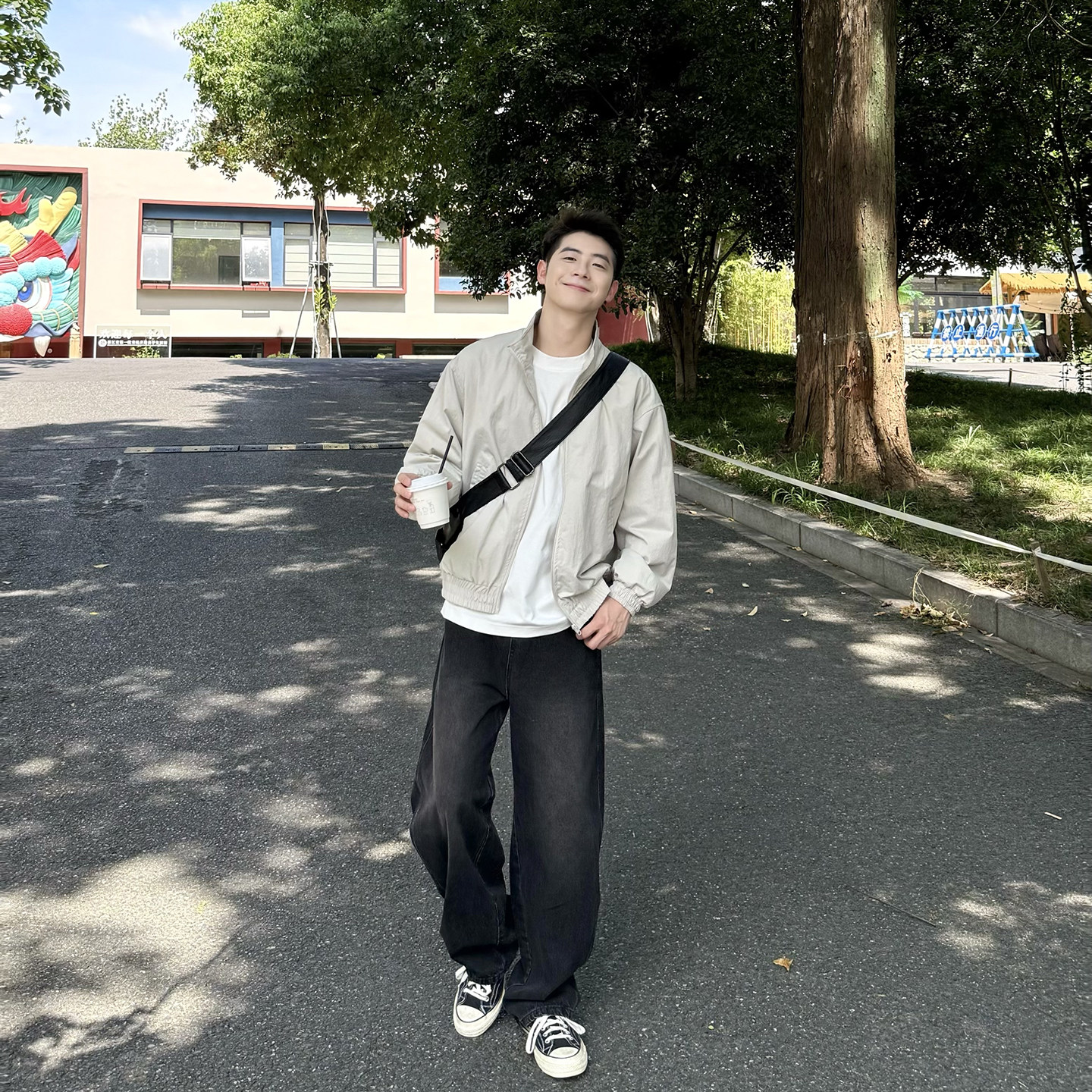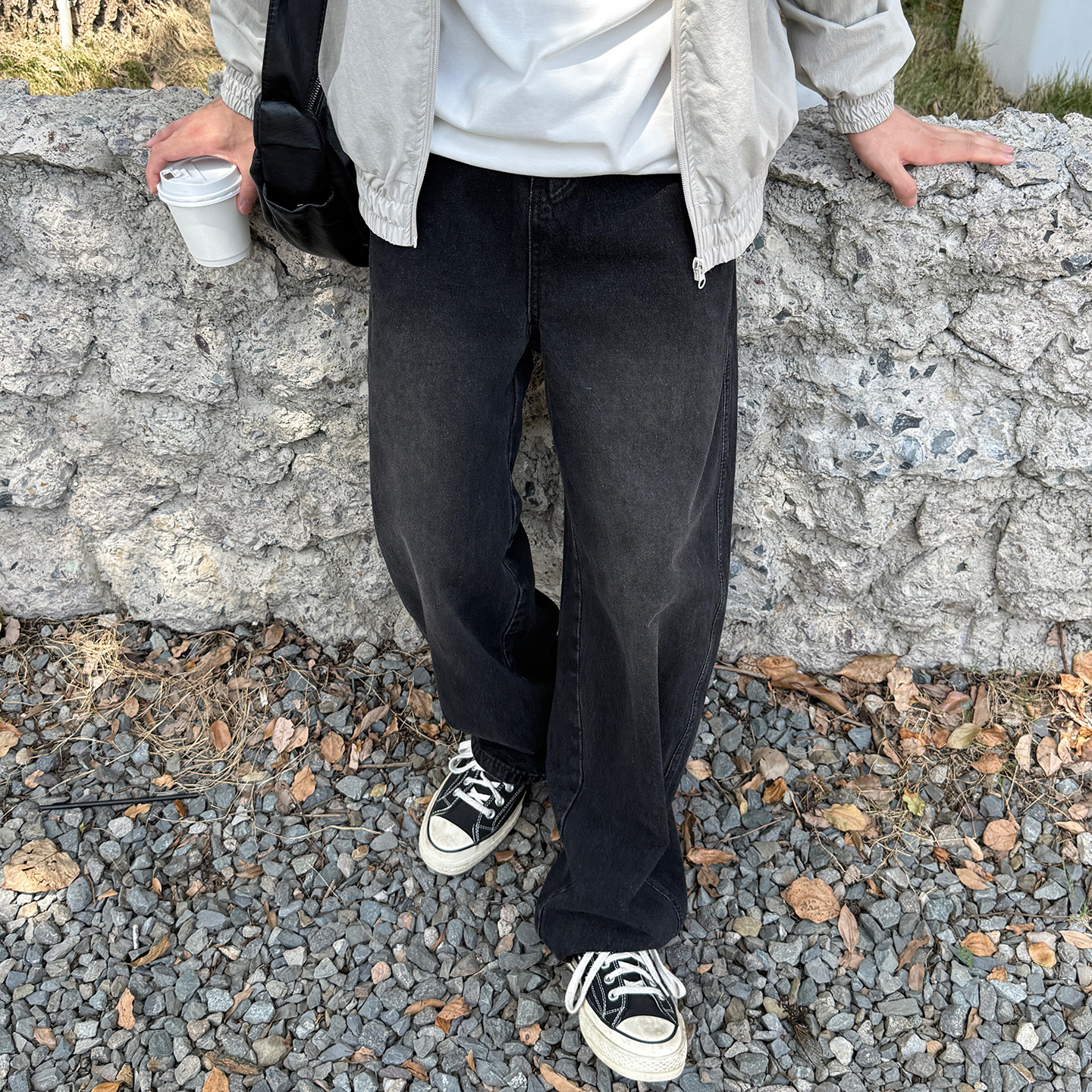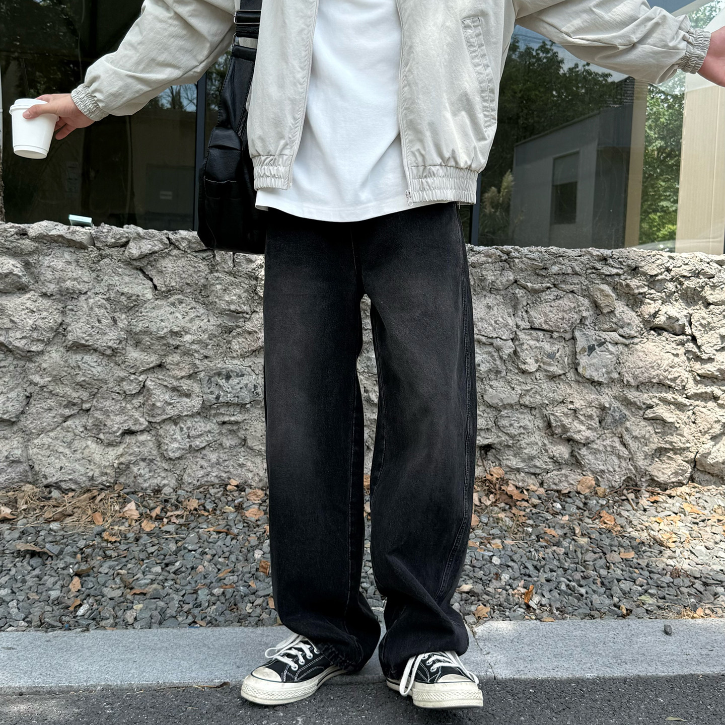 黑色复古水洗日系弯刀牛仔裤男生新款春季休闲宽松百搭阔腿长裤子