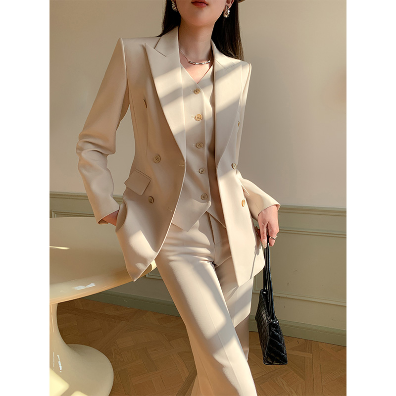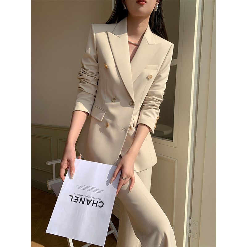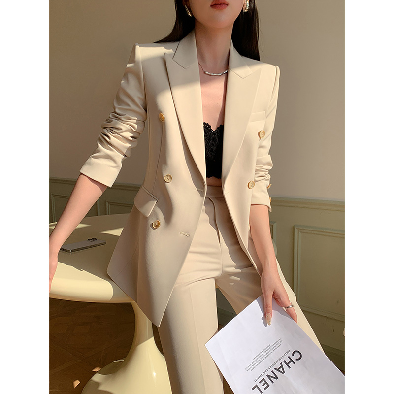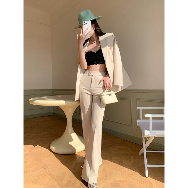 杏色高级感西装套装女时尚气质微喇叭修身显瘦职场正装主持人面试