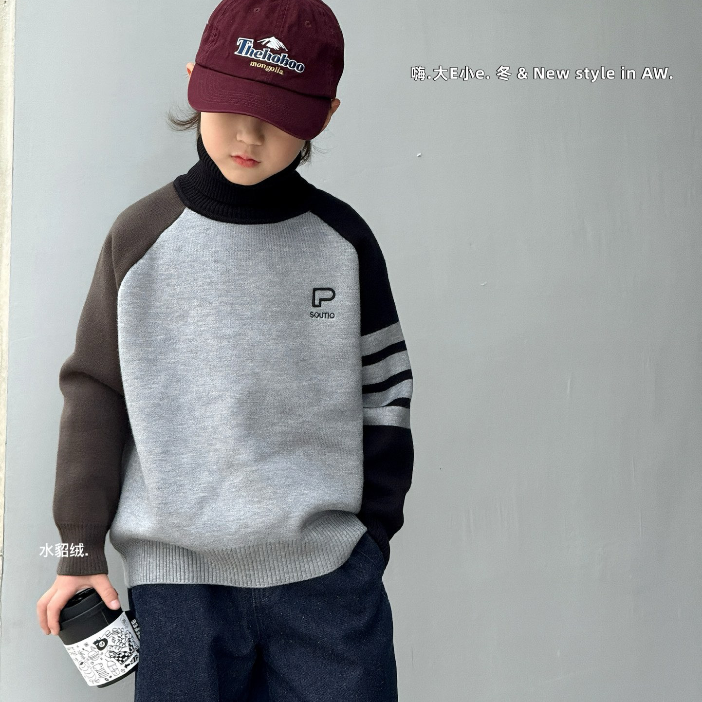 大e小e冬新款男女童高领加绒毛衣针织衫貂绒毛线打底衫中大童儿童