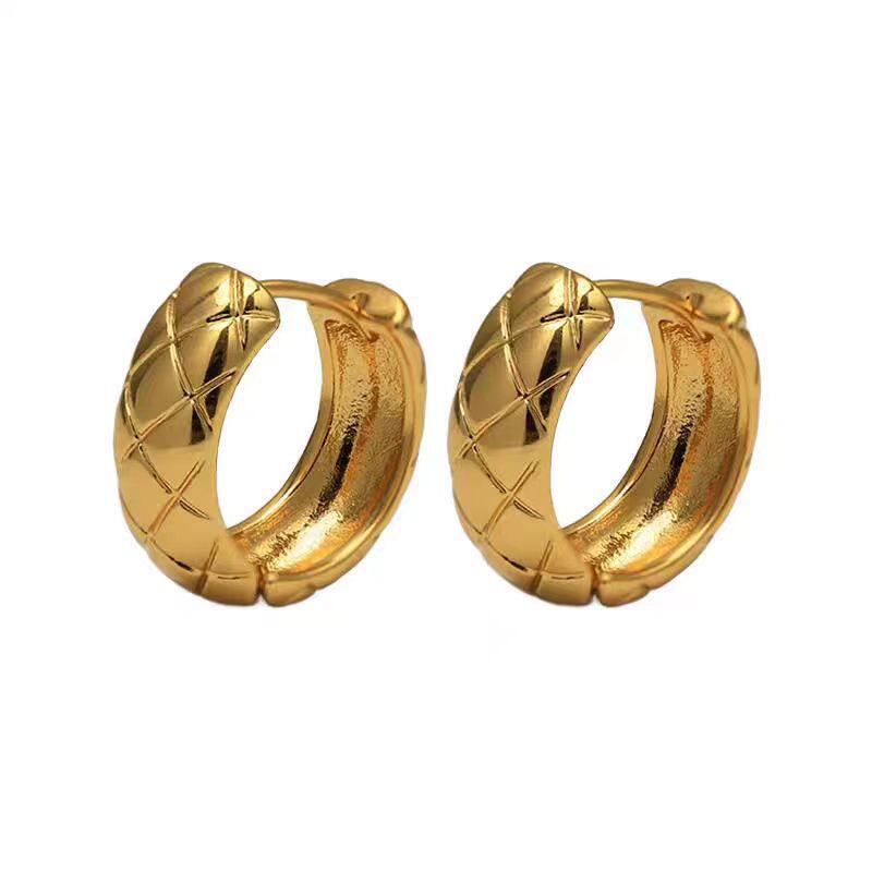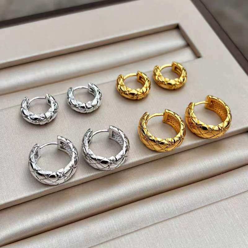 欧美极简金属银色菱格圈圈耳环女高端轻奢高级感气质精致耳圈耳饰