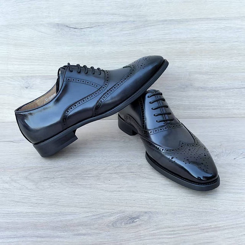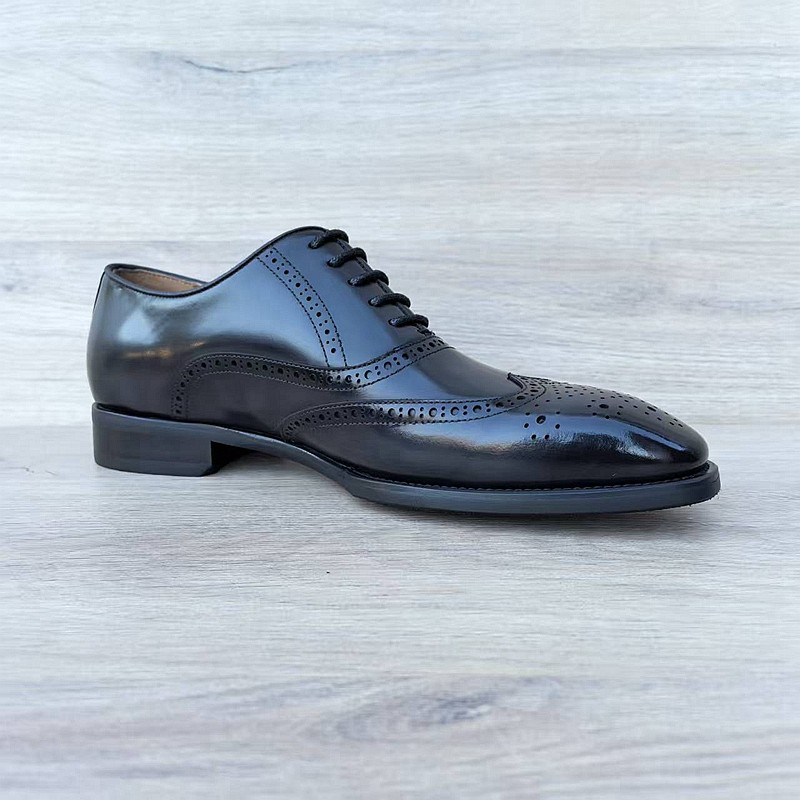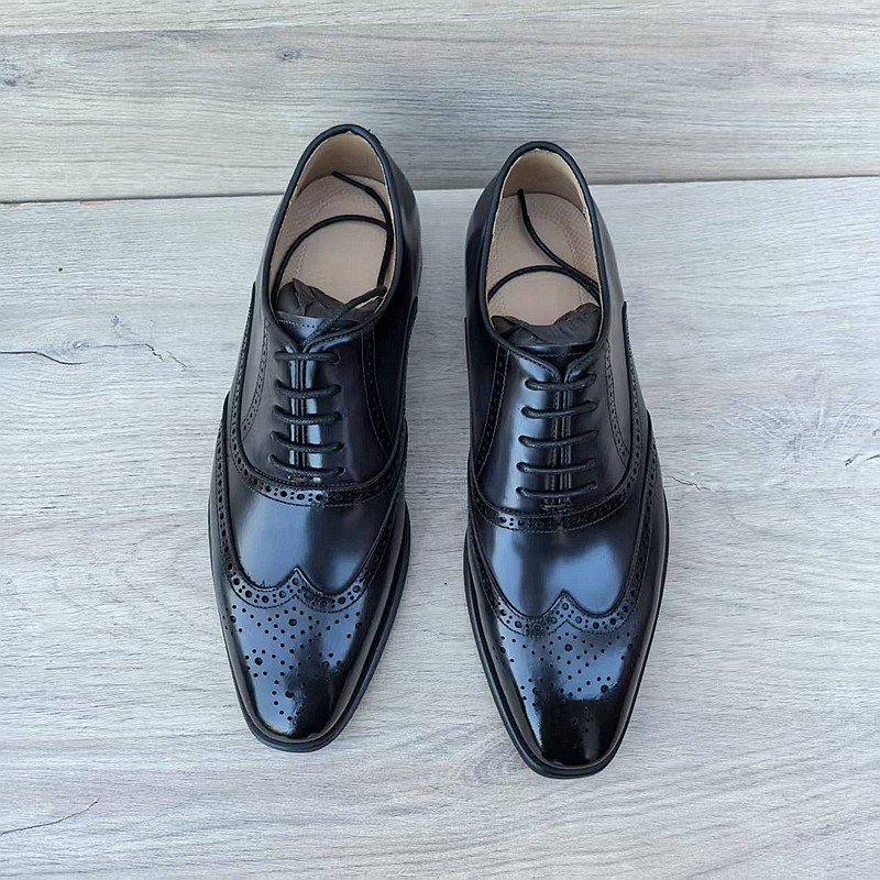 意大利手工男鞋头层牛皮尖头英伦百搭布洛克商务皮鞋男真皮缝线