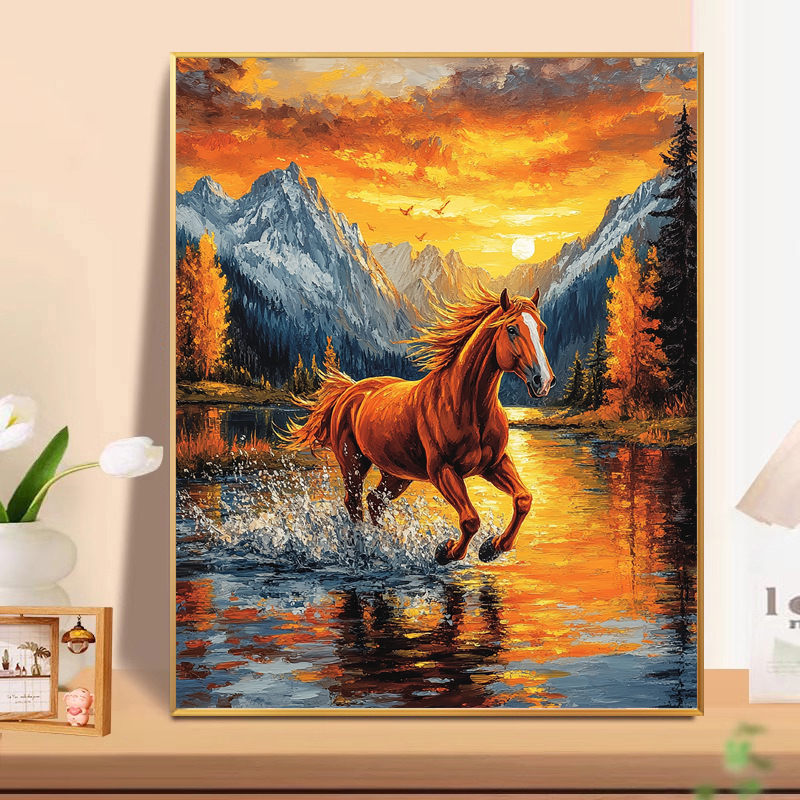 骏马奔腾数字油画diy填色填充解压手工手绘涂色高级感丙烯油彩画