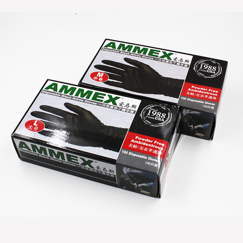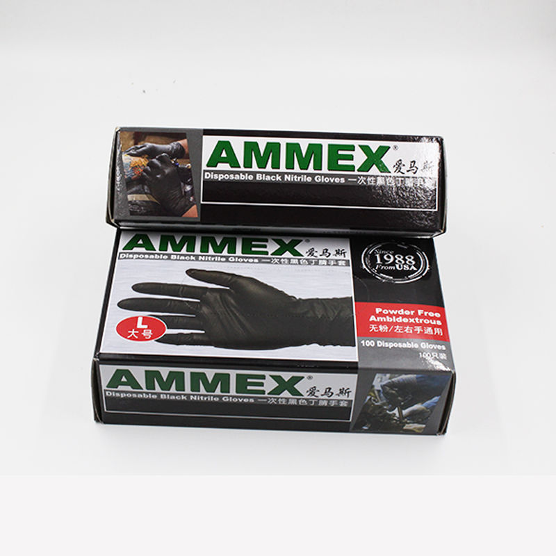 爱马斯一次性手套黑色丁腈加厚耐用纹身乳胶橡胶丁晴劳保纹绣厨房