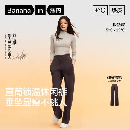 【刘浩存同款】蕉内热皮301+女士薄绒直筒休闲裤女裤黑色加绒裤子