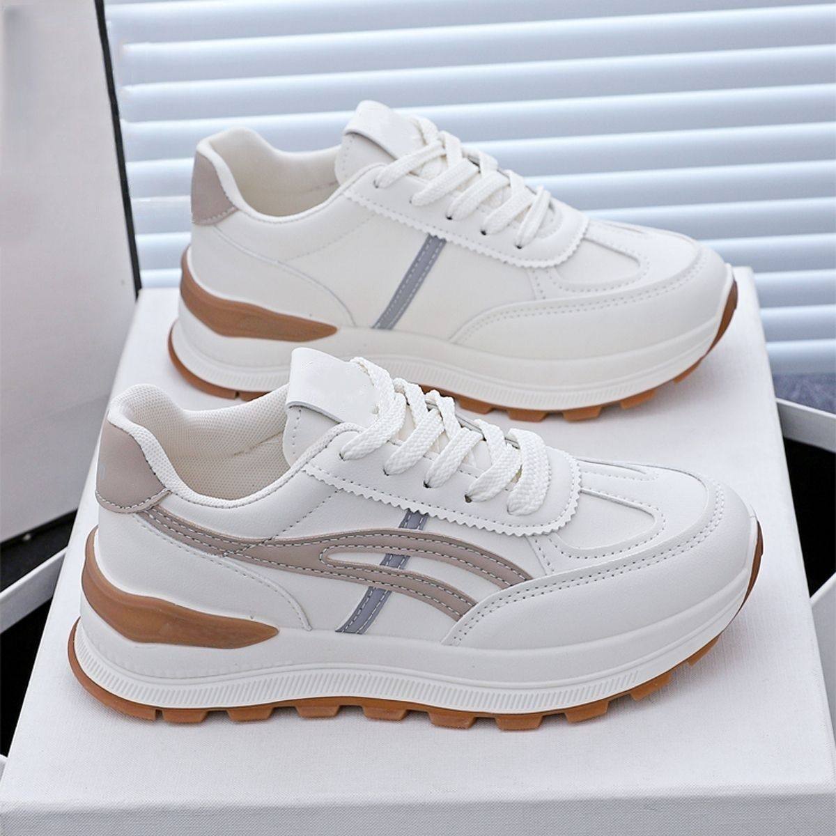 啄木鸟断码真皮运动鞋女2025秋季新款舒适轻便防水防滑厚底老爹鞋