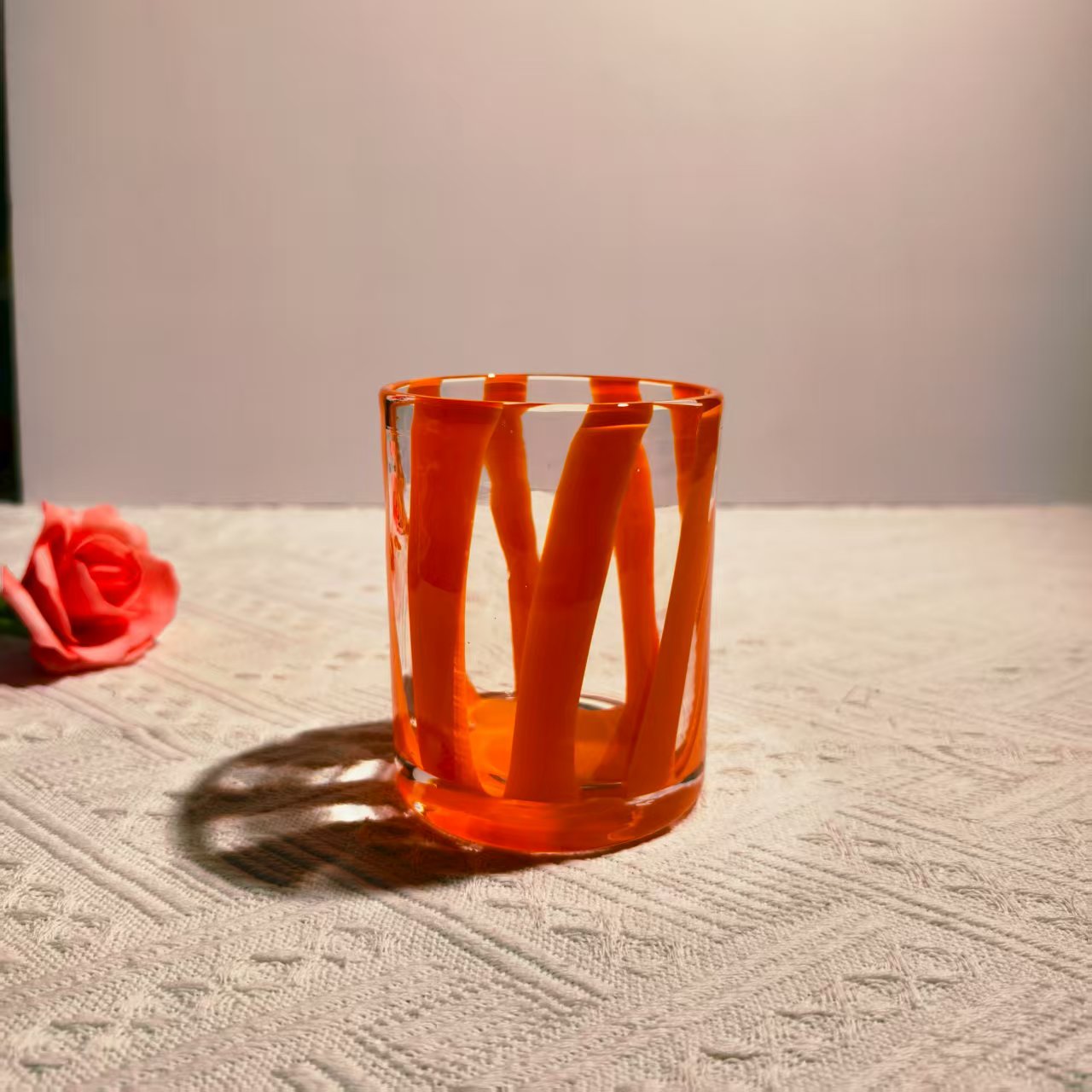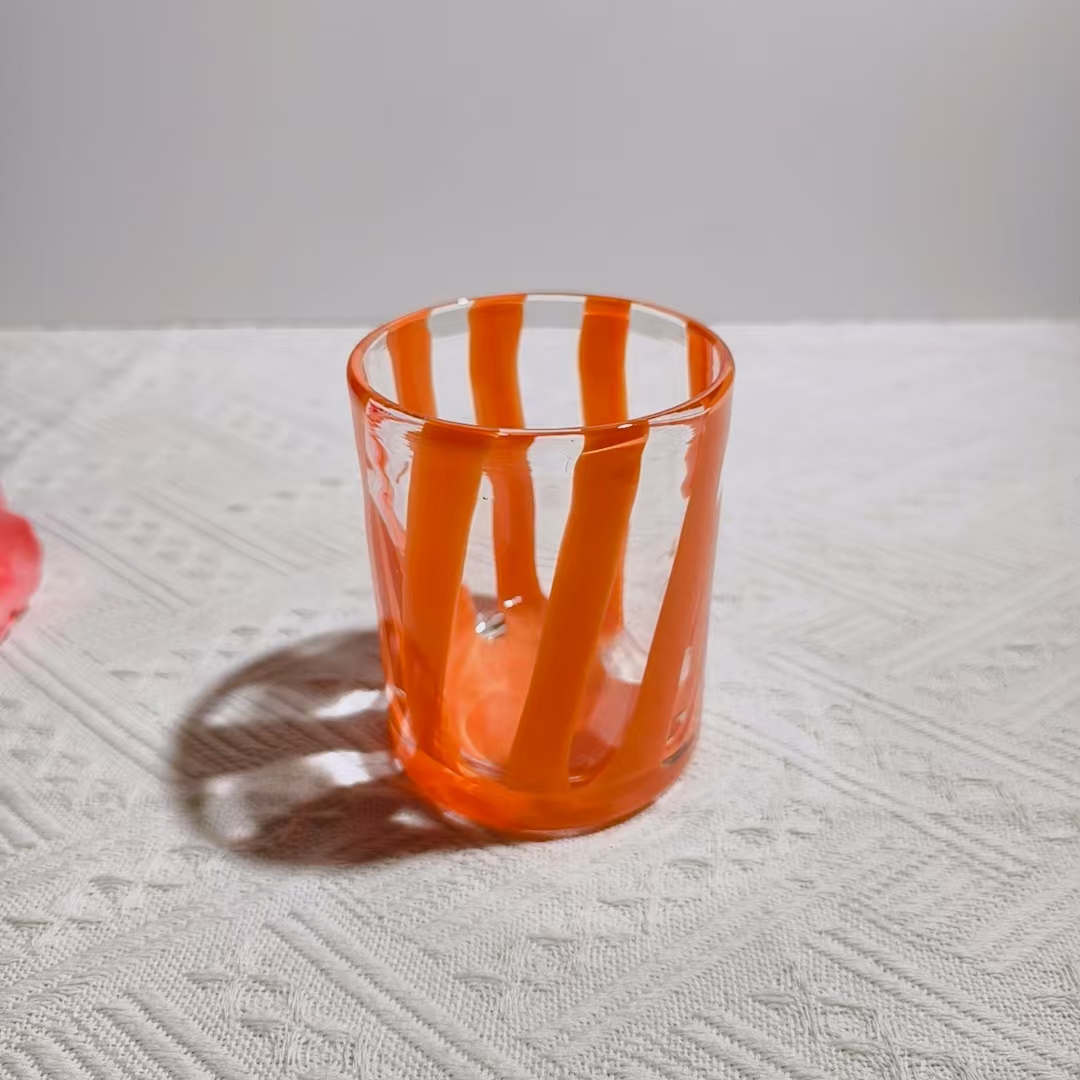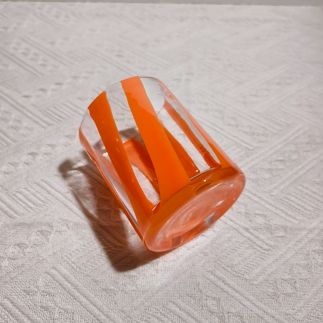 【可尔】玻璃器皿ins简约橙色条纹不水杯果汁玻璃杯牛奶咖啡杯D63