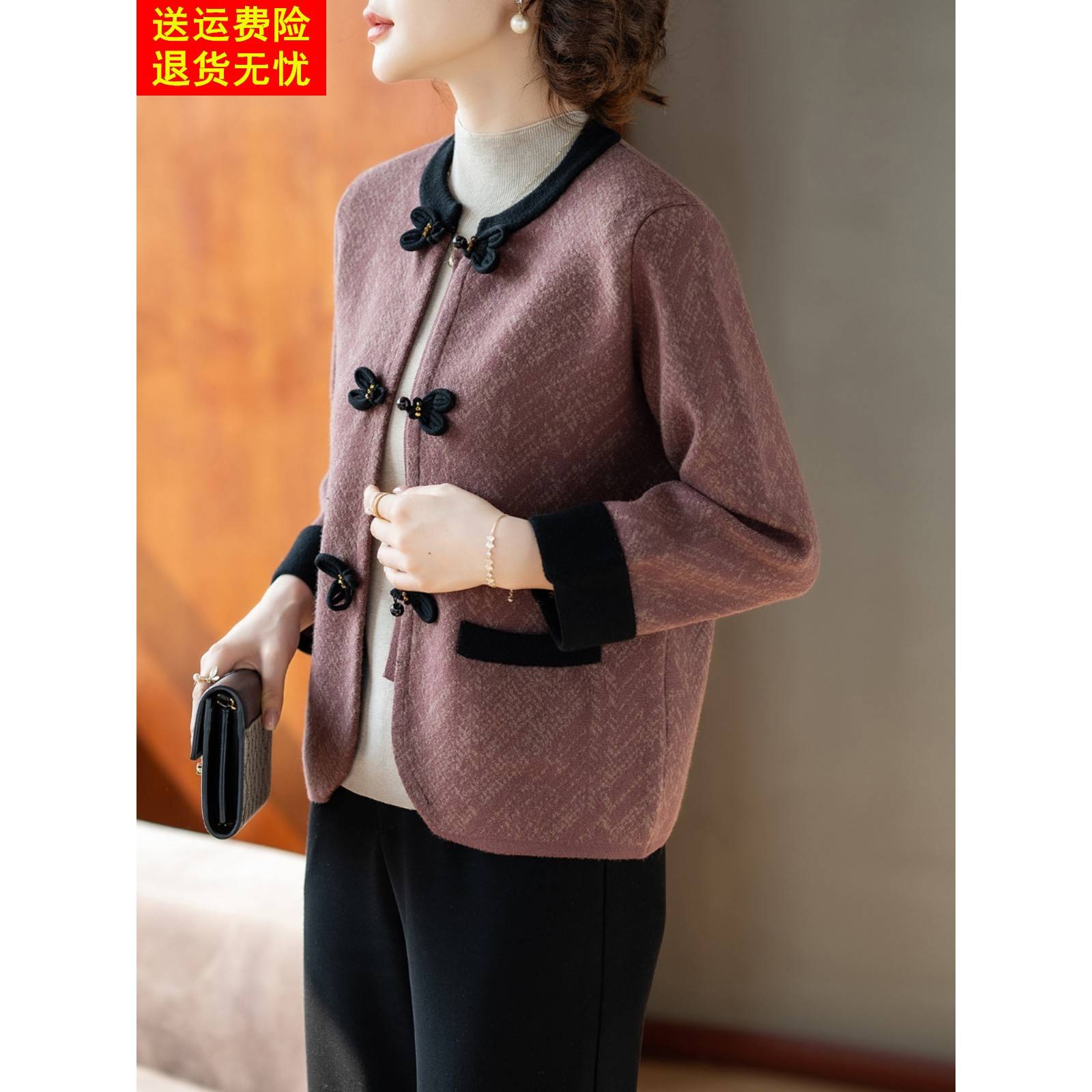 妈妈春装外套2025新款中老年人女士洋气时尚上衣服40岁50毛衣开衫