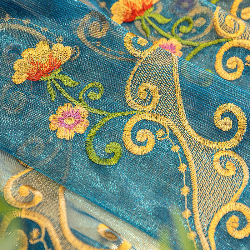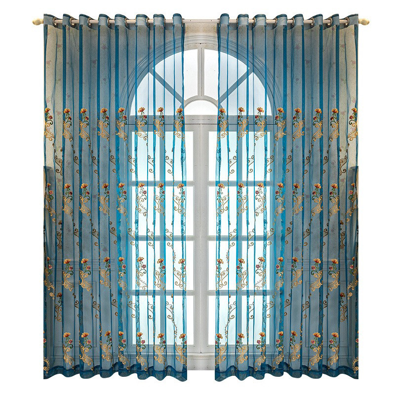 欧式奢华刺绣窗纱客厅阳台遮光隔热防晒窗帘卧室蓝色纱帘遮阳窗帘