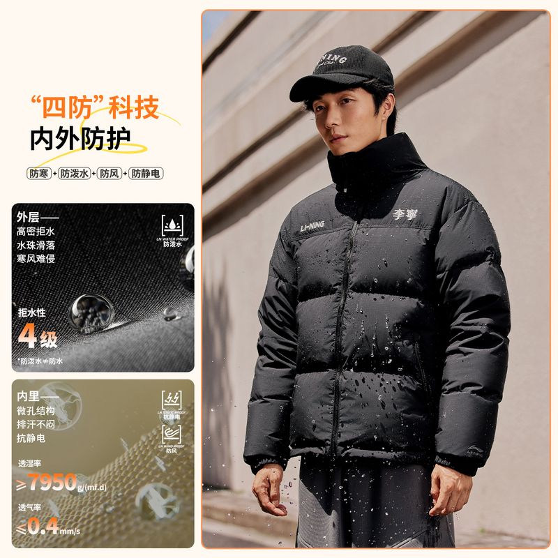 李宁男女同款防泼水防风排湿宽松鸭绒短羽绒服丨AYMV431-5