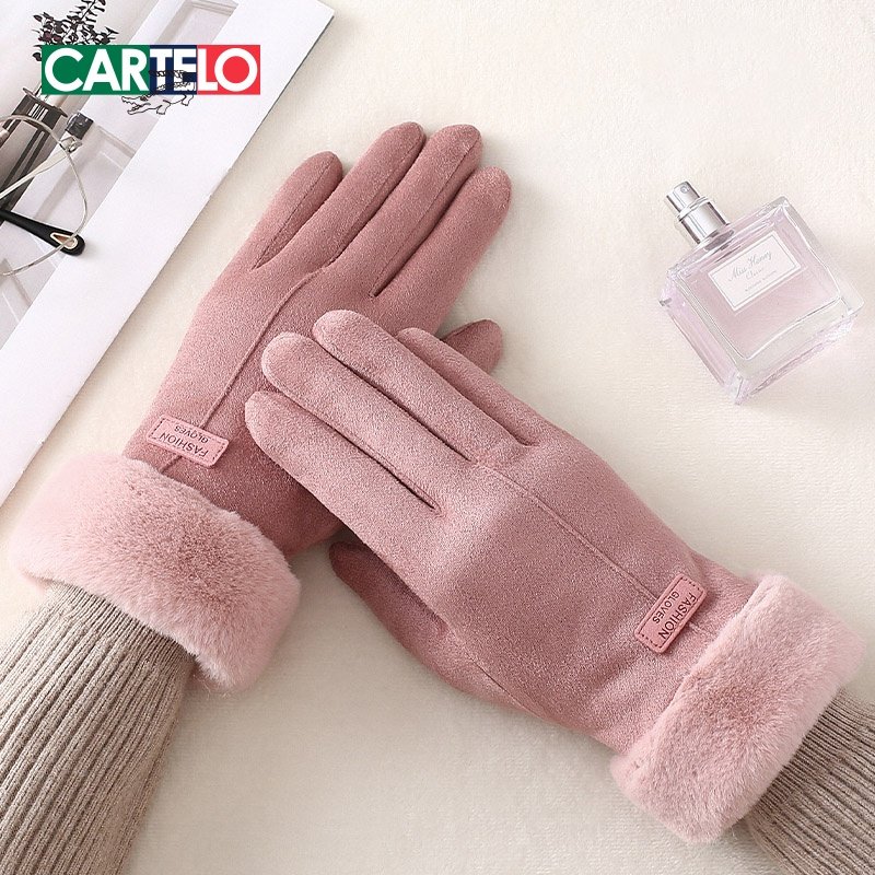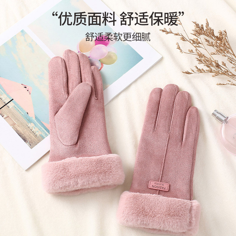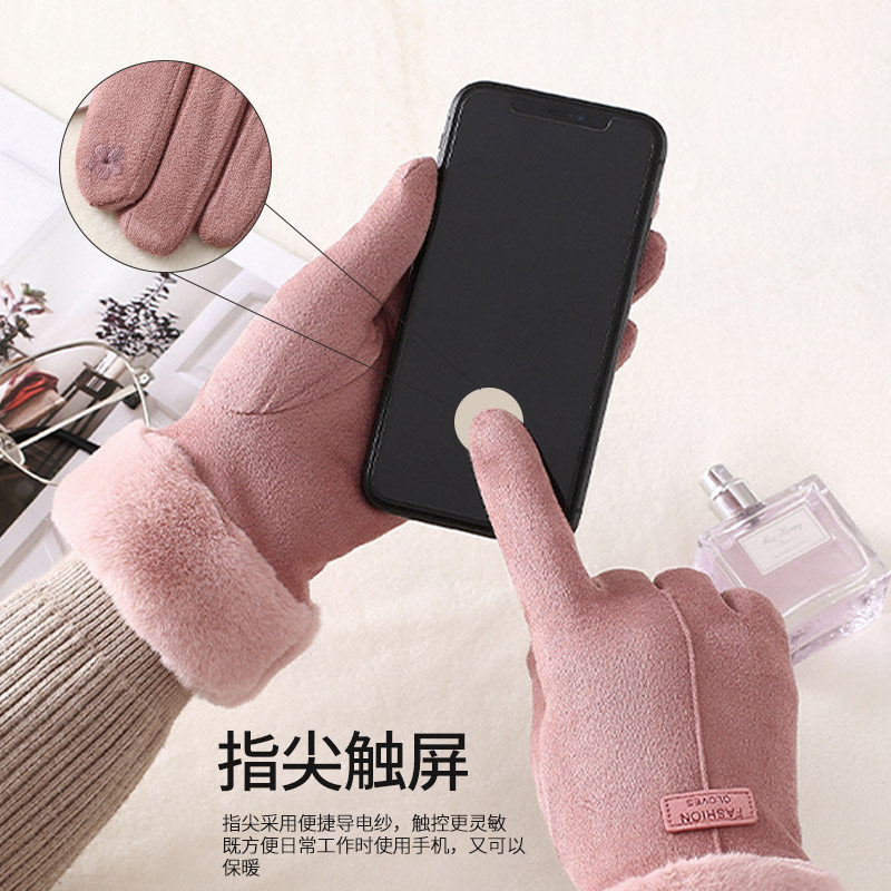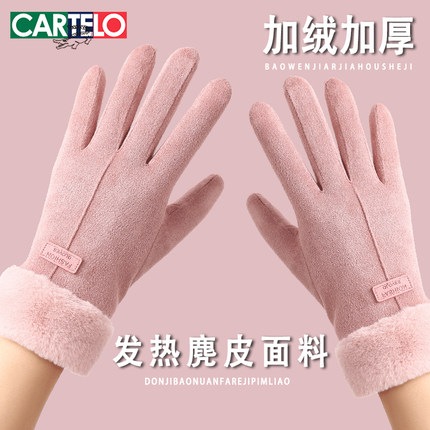 卡帝乐鳄鱼手套女款冬季保暖加绒加厚防寒防水电动车骑行触屏手套