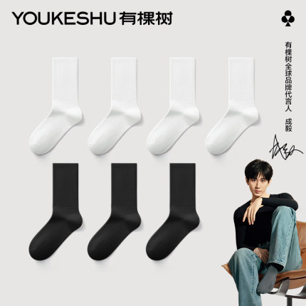有棵树袜子男士中筒纯夏季棉袜男女7A抗菌运动透气春秋长筒男生袜