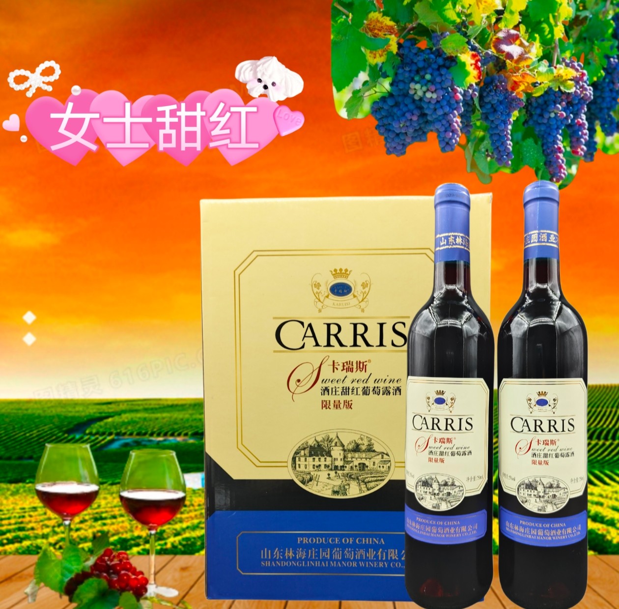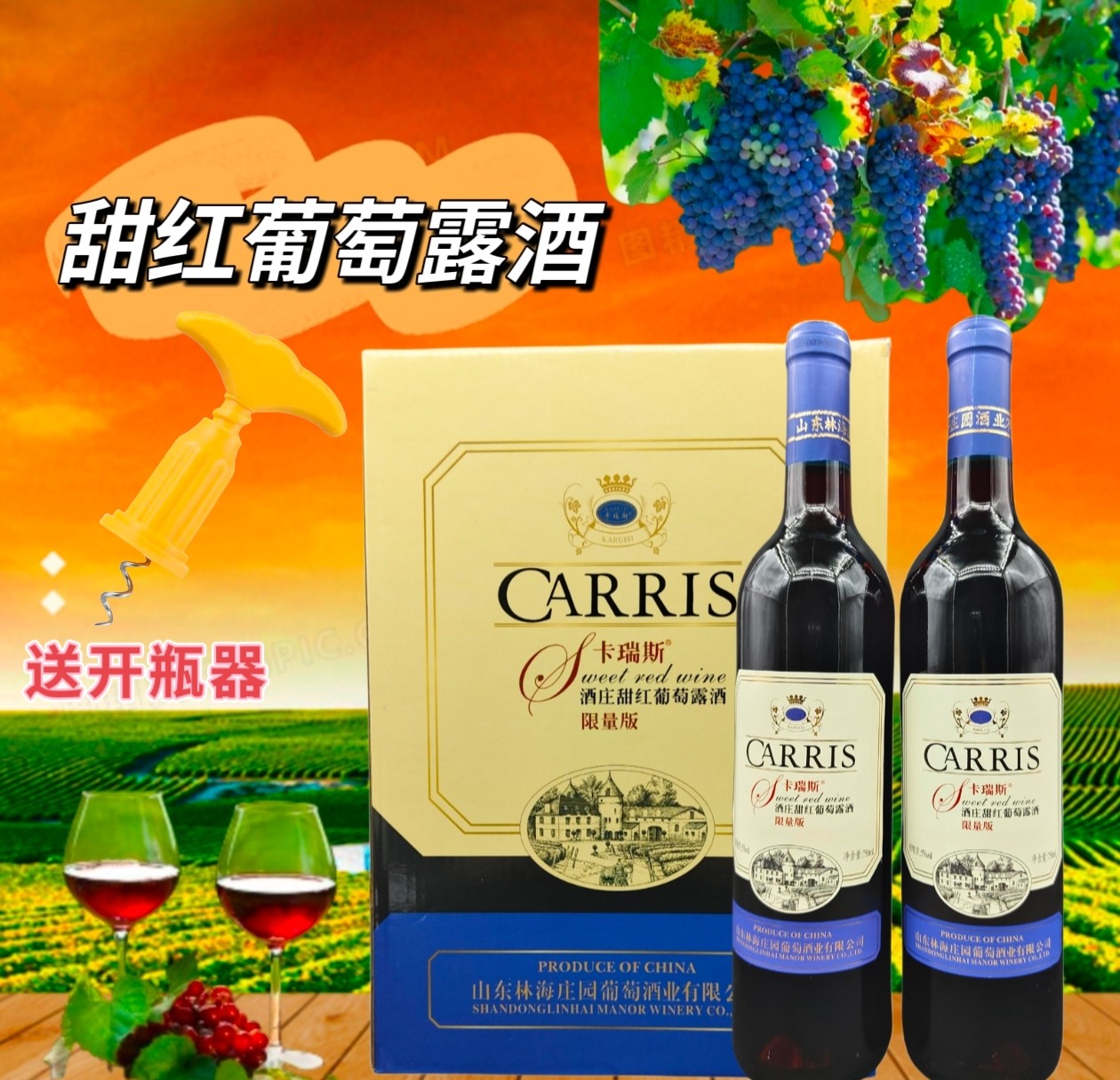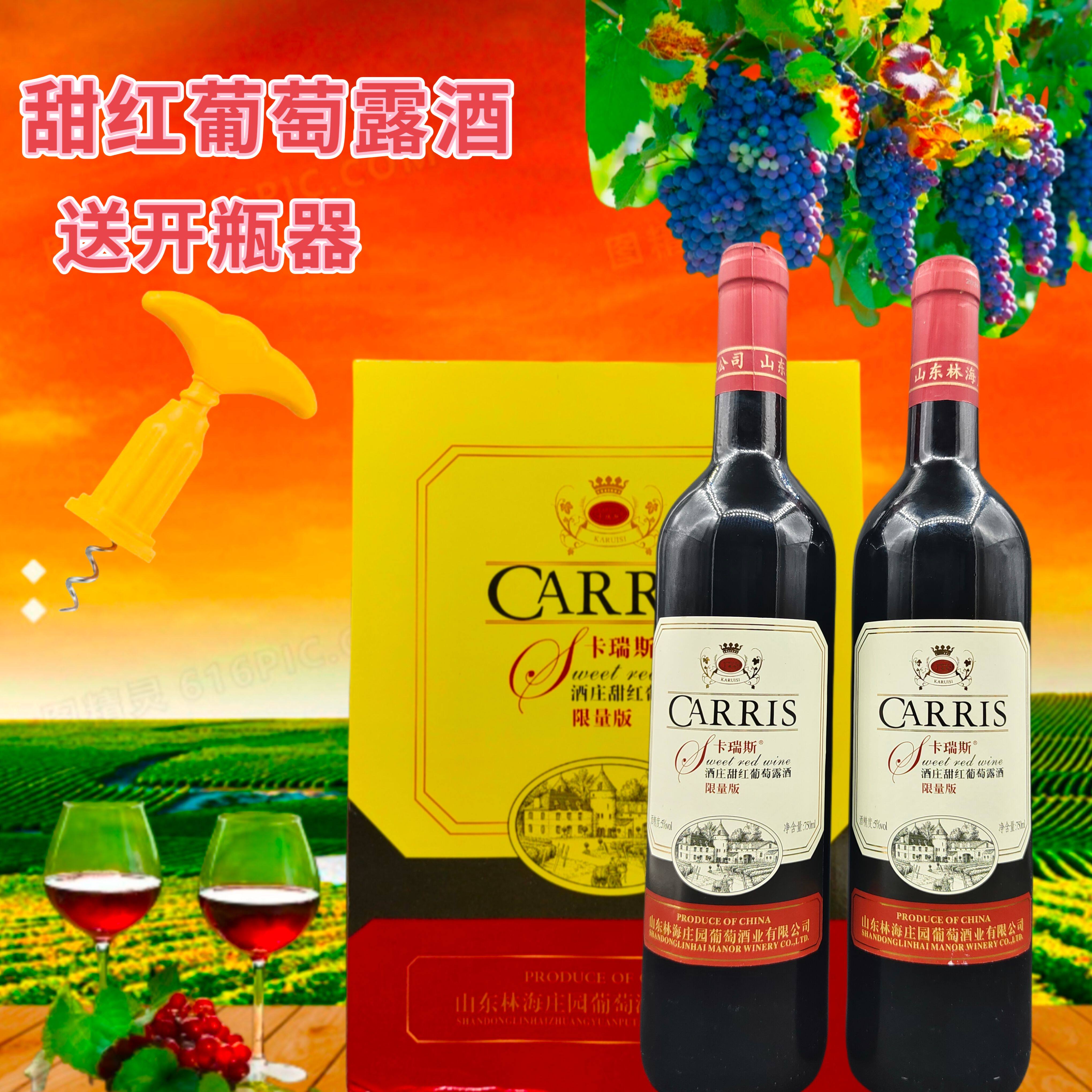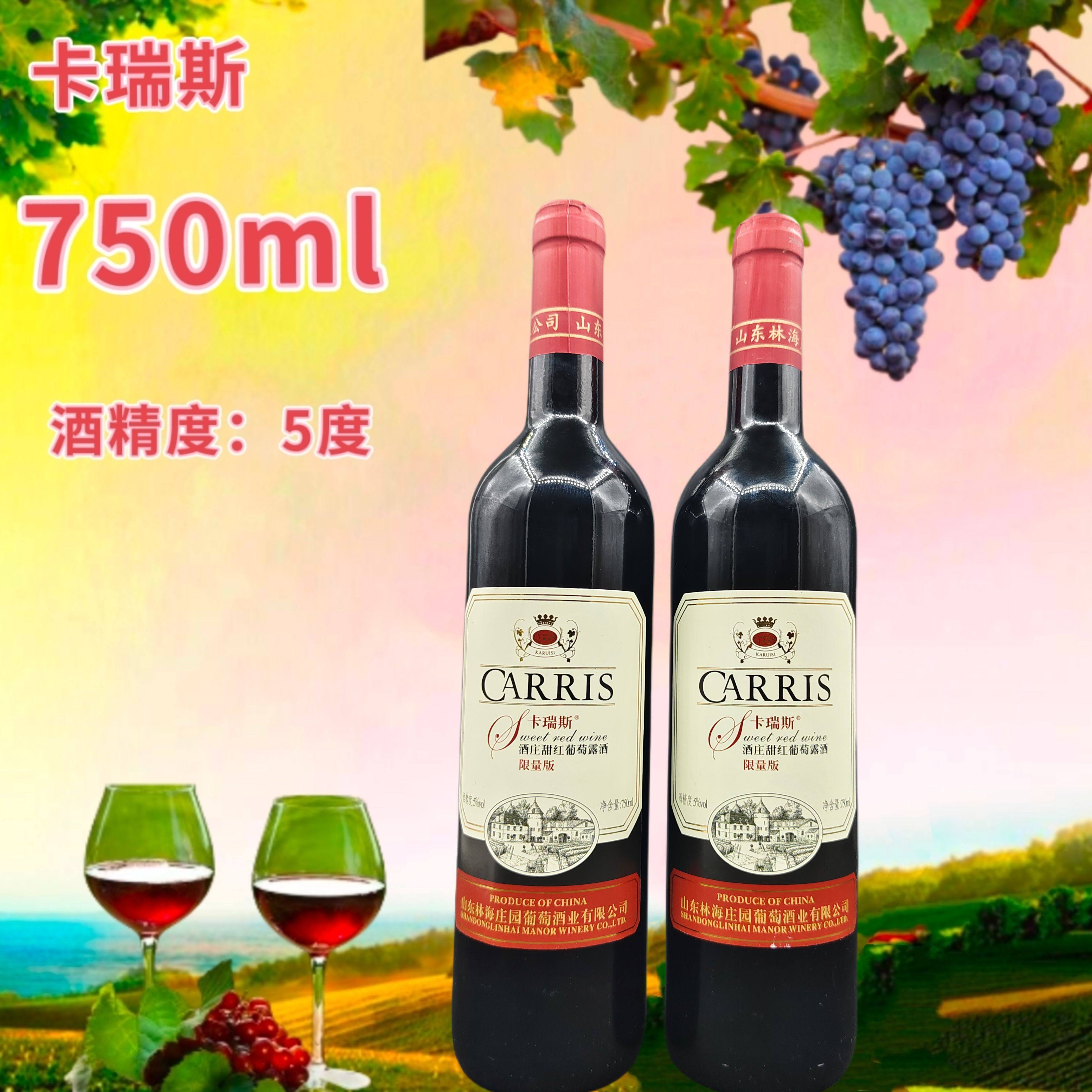 甜红葡萄酒750ml*2瓶装5度露酒低度男女士甜酒山东卡瑞斯红酒干红