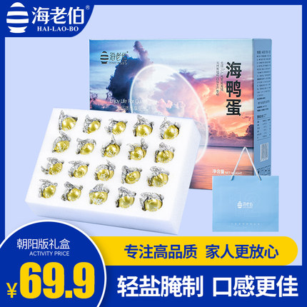【朝阳版礼盒】海老伯北部湾烤海鸭蛋A级70g*20枚广西特产咸鸭蛋
